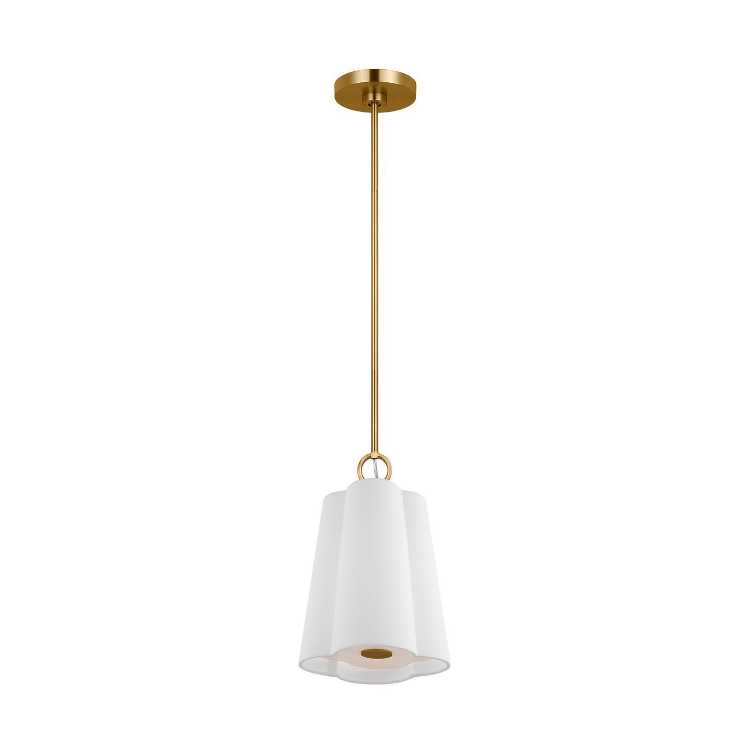 The Odelia Small Pendant features floral motifs that take center stage with its classic quatrefoil silhouette, beautifully updated with a fabric white shade and brass finish. This elegant 9" pendant adds a captivating focal point perfect for kitchens, dining areas, entryways, and spaces seeking refined lighting with sophisticated appeal. The combination of white fabric shade and brass accents creates timeless elegance while delivering soft, diffused illumination throughout the space. The damp-rated construction ensures reliable performance in various environments, while the dimmable capabilities provide a customizable ambiance. With its sloped ceiling compatibility and expert craftsmanship, this pendant transforms any space with distinctive style and performance.