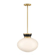 The Piper Medium Pendant 15" makes a playful statement, defined by its bold, organic glass and elegant color contrast. This fixture features a unique, softly rounded opal glass globe topped with a distinctive metal band in black. The result is a warm, diffused glow that fills the space with elegant, focused illumination, making this an ideal centerpiece over a dining table or spacious kitchen island. With its ETL dry rating and sloped ceiling compatibility, it offers both functional beauty and versatile appeal. The sophisticated two-toned finish of satin brass and black adds a sharp, high-contrast visual, delivering enduring style and a perfect blend of elegance and simplicity.