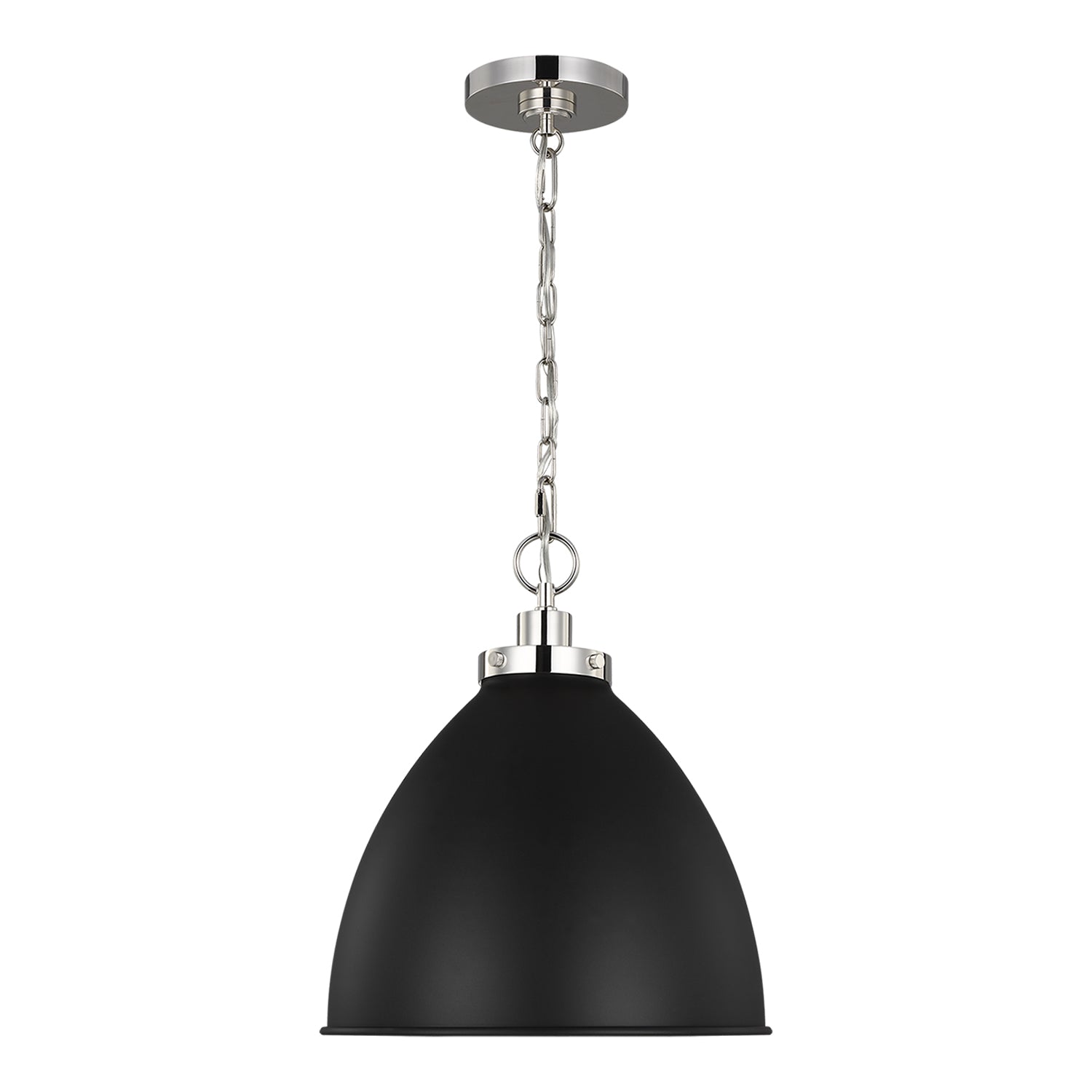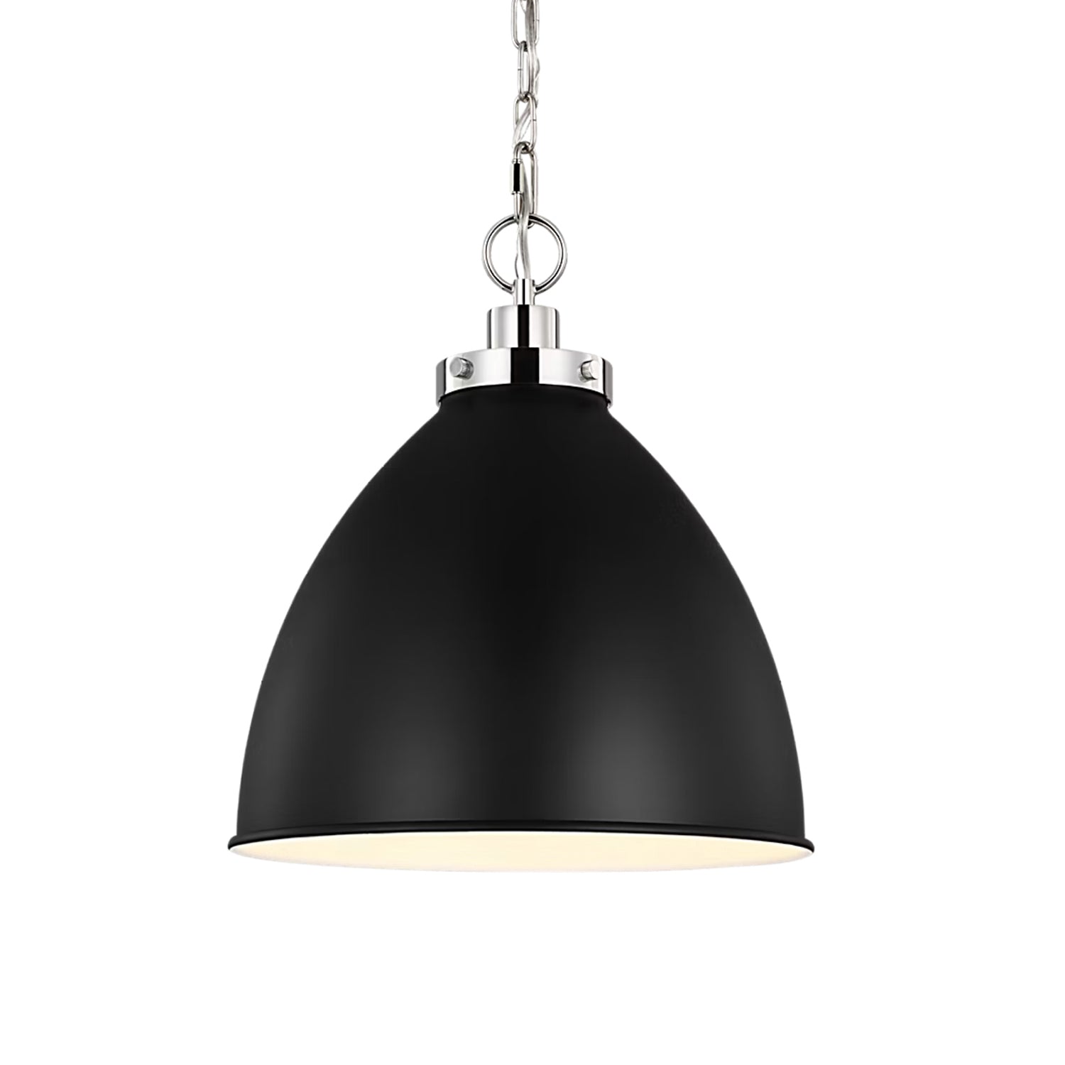 Rodney Medium Pendant 16", Matte Black and Polished Nickel