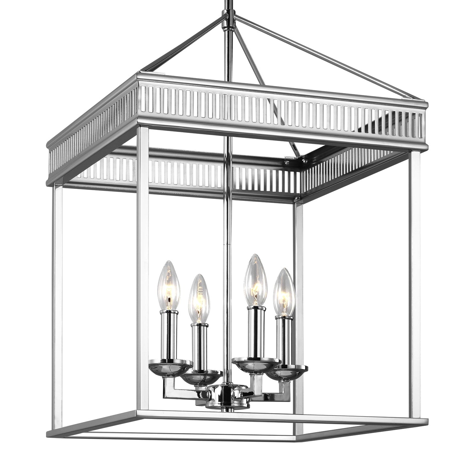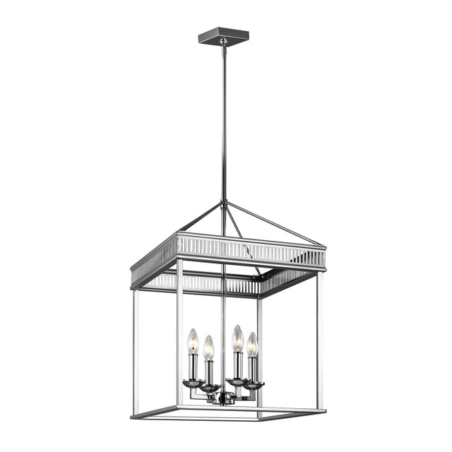 A timeless take on the classic lantern silhouette, the Rubin Lantern Pendant makes a refined statement with its open, airy frame. This traditional fixture features vented details at the top and exposed classic candelabra bulbs, providing a clean and sophisticated look that is perfect for any space. This commanding fixture is thoughtfully designed to provide elegant illumination for an entryway, dining room, or hallway. The brilliant Polished Nickel finish provides a sleek, reflective sheen that enhances the fixture's classic design, adding both functional beauty and enduring appeal.