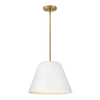 The Ursa Pendant 16" makes a sophisticated statement with its sleek, minimalist form and bold scale. The wide, slightly tapered shade features clean, continuous lines, directing a brilliant and focused light downward. This pendant is thoughtfully designed to provide effective task illumination, making it an ideal choice for a kitchen island, dining nook, or office space. With its ETL dry rating and sloped ceiling compatibility, it offers both functional beauty and versatile appeal. The sleek Matte White and Satin Brass finish combination creates a clean, airy contrast, resulting in a look of enduring style and timeless elegance. This striking collection delivers enduring style and a perfect blend of elegance and simplicity.