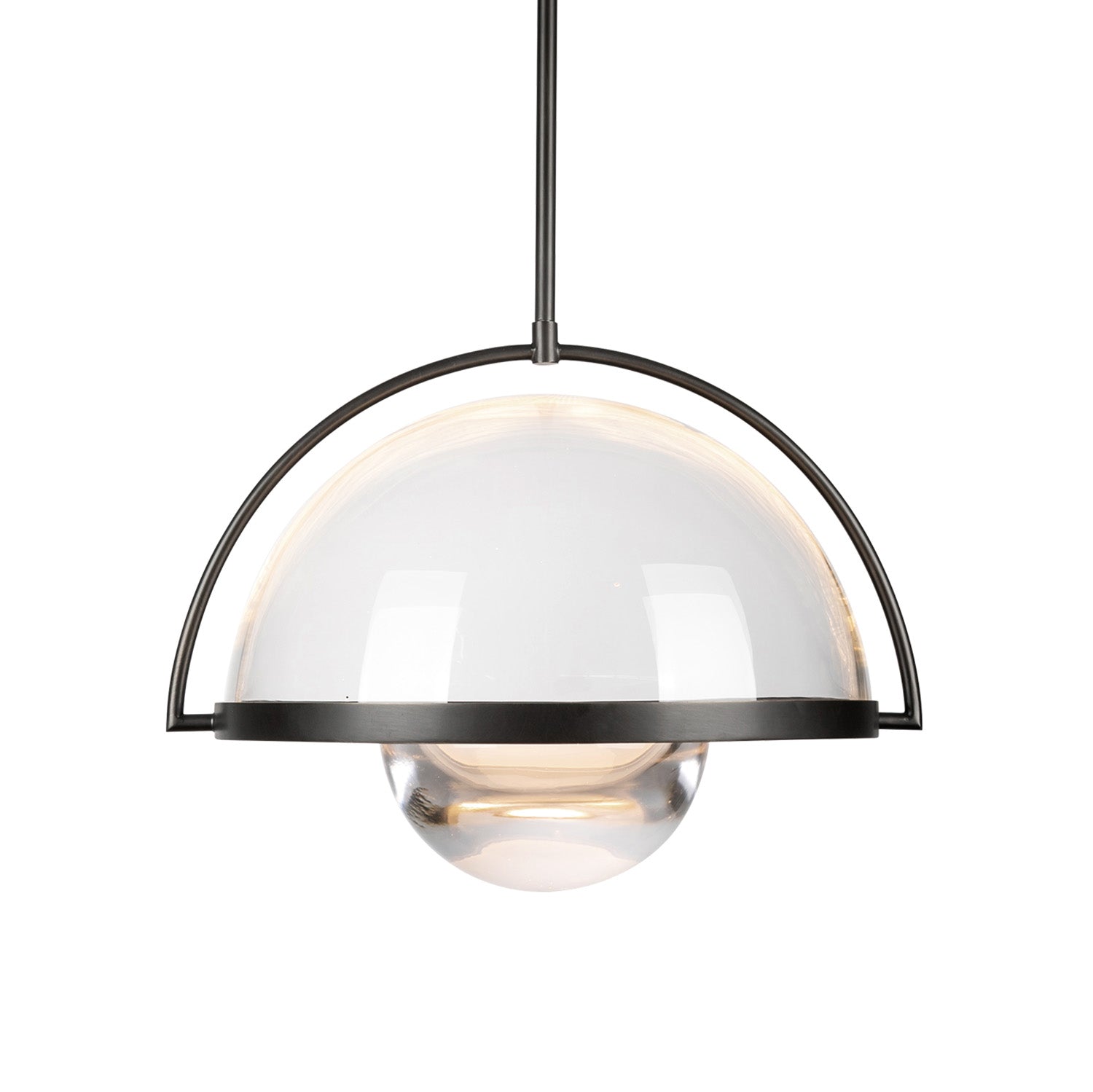 The Wilton LED Pendant brings modern sophistication to any interior space with its captivating symphony of modern whimsy and timeless elegance. This striking fixture features dual glass shades adorning both top and bottom, enveloping integrated LED lights within its dark urban bronze frame that reinvents the classic mid-century dome pendant. The dual glass design creates beautiful light distribution perfect for dining rooms, kitchens, living spaces, and interiors seeking vintage charm with contemporary sensibility. The integrated LED technology provides warm 3000K illumination at 90 CRI through the clear glass, producing exceptional color rendering with energy-efficient performance that marries vintage appeal with modern functionality. At 16" wide with adjustable hanging height and substantial presence, this pendant makes a masterpiece statement that illuminates your space with mid-century elegance and contemporary performance.