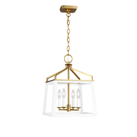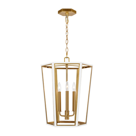 Rawlin Small Lantern Pendant 16", Matte White and Brushed Brass
