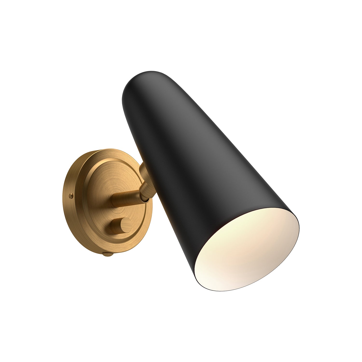 Roy Pivot Wall Sconce, Matte Black and Antique Brass