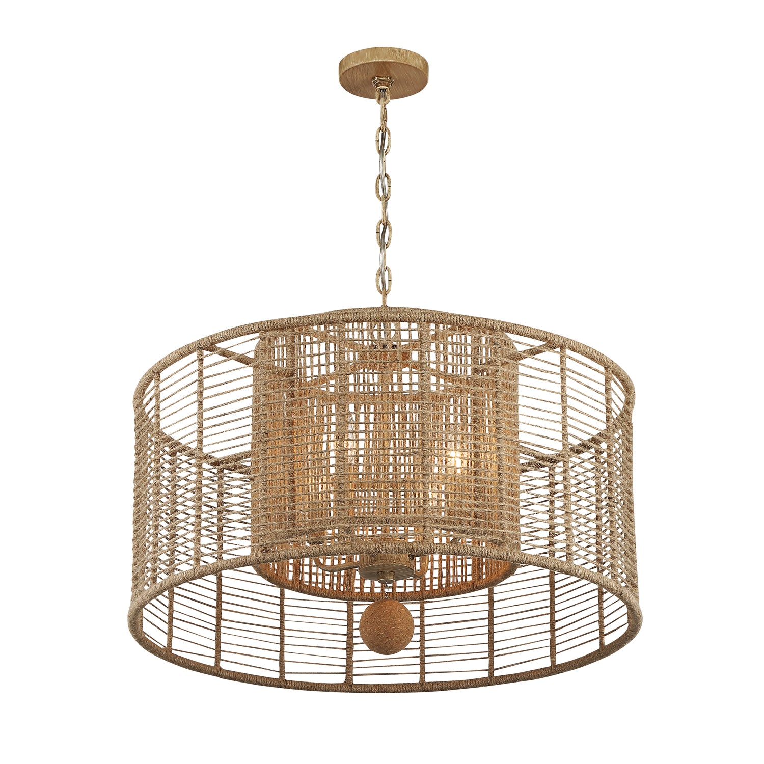Sellah 4 Light Pendant 25", Jute and Satin Sand