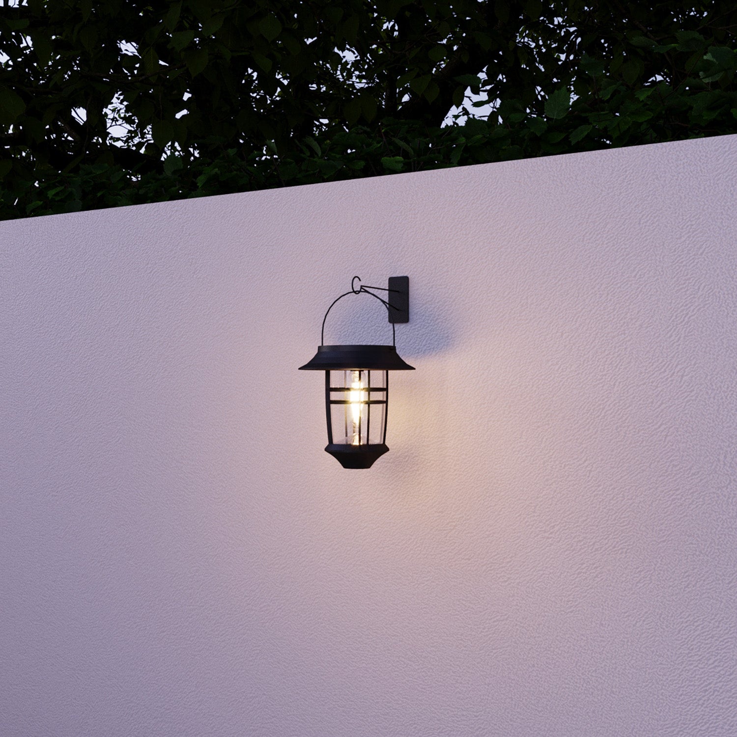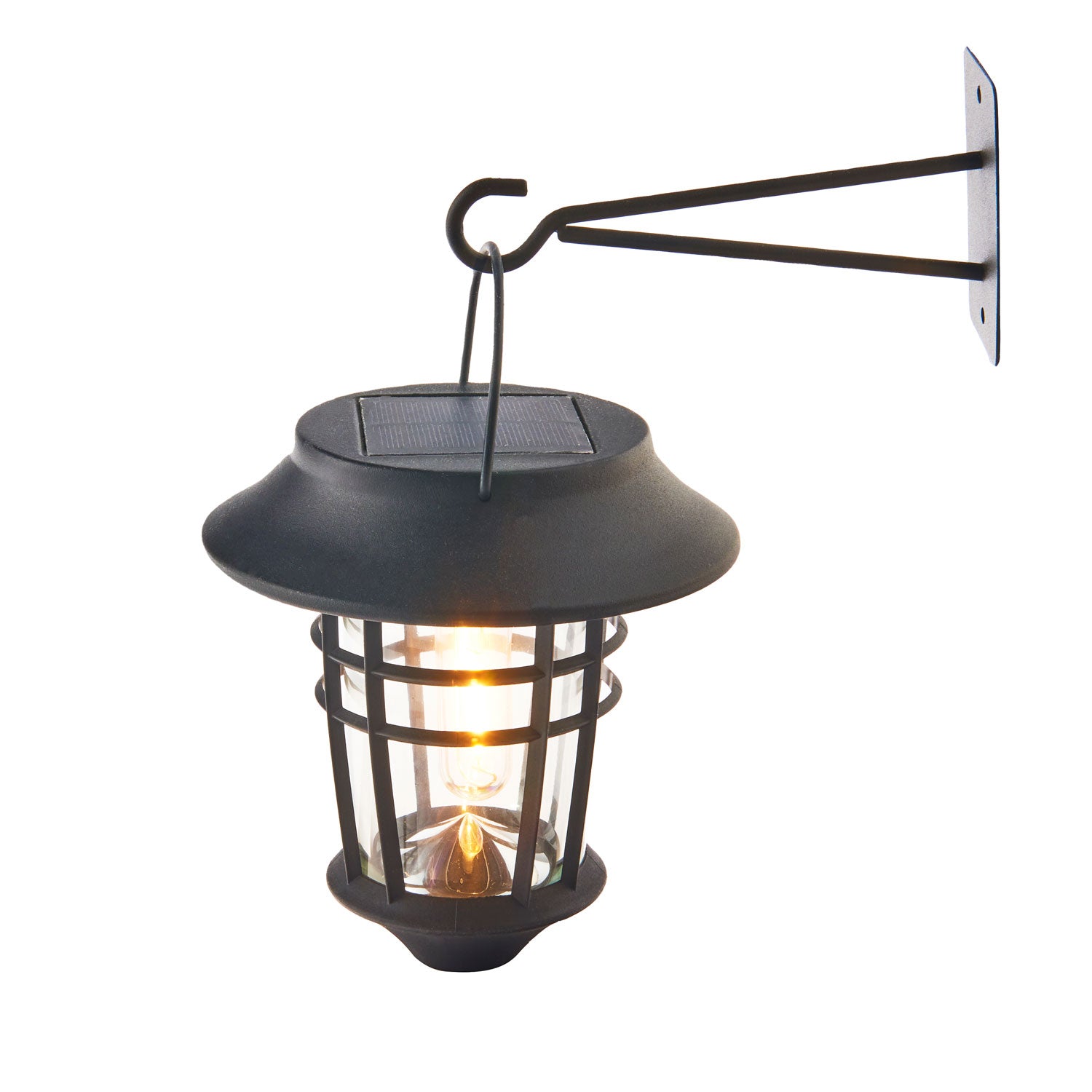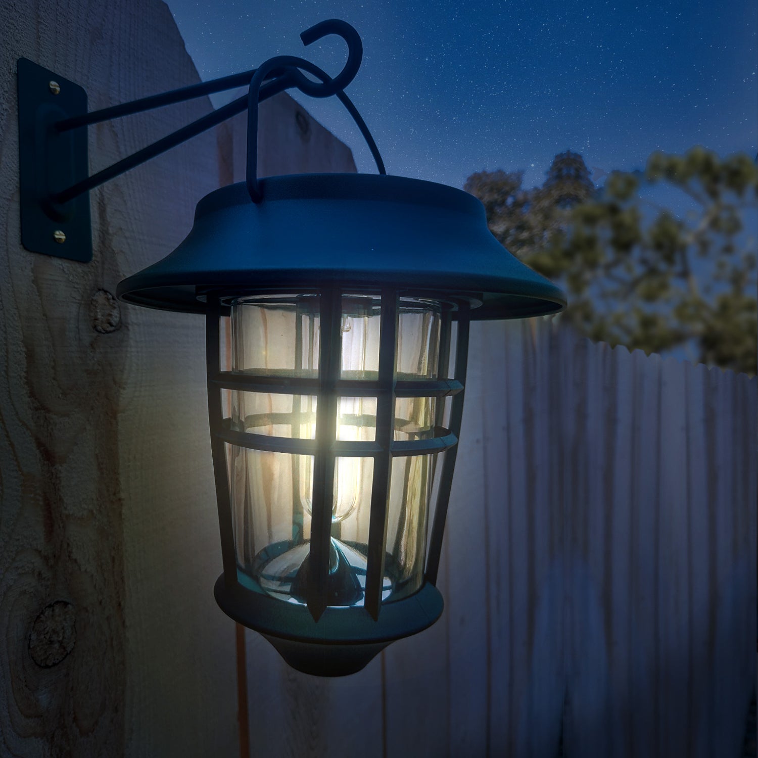 The Elloway set is comprised of two solar-powered black hanging wall lanterns with a subtle nautical feel - the rounded body displays charming details and elements inspired by marine lanterns or vintage coach lights. These versatile outdoor wall lights are cleverly designed with beautiful authentic elements that add durability and charm. The black metal bars protect the glass body while adding character, and each light includes a sturdy metal handle for hanging anywhere you imagine. Use the included mounting brackets or be creative. These lanterns are perfect as wall sconces on a patio or porch, as fence lights, on outbuildings or even as camper lights. The discrete solar panels are located in the crown of the tapered roofs, ready to recharge the included battery as soon as the sun rises. After a day in direct sun, the lanterns will automatically turn on at dusk providing a warm glow well into the evening.