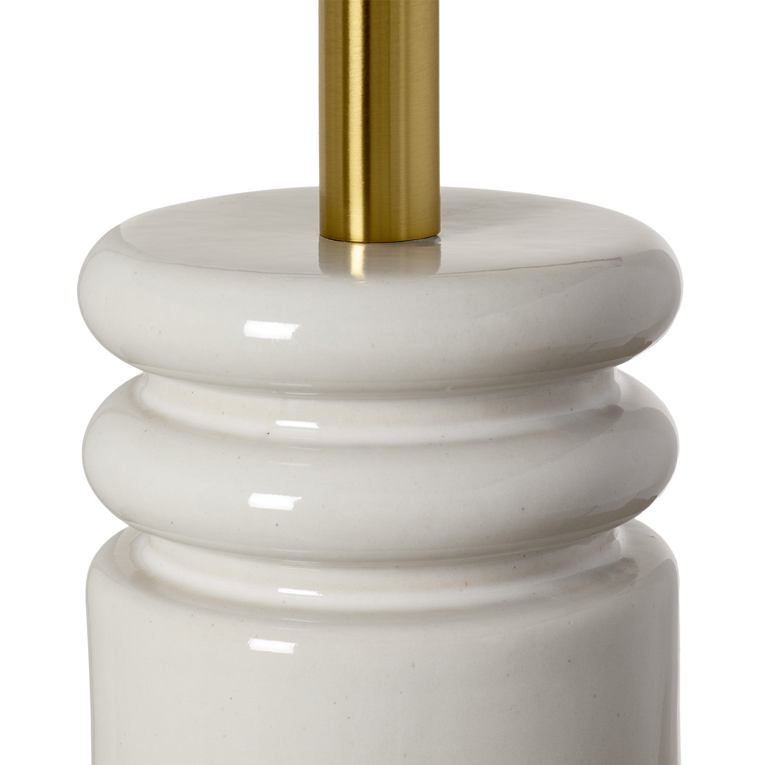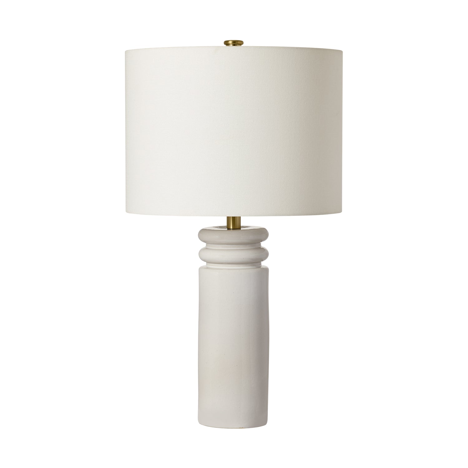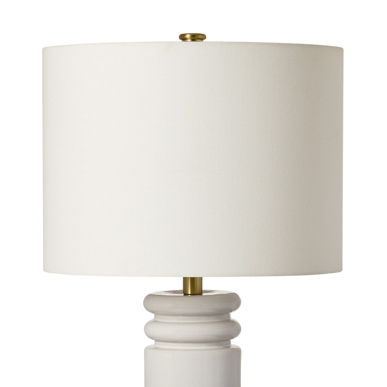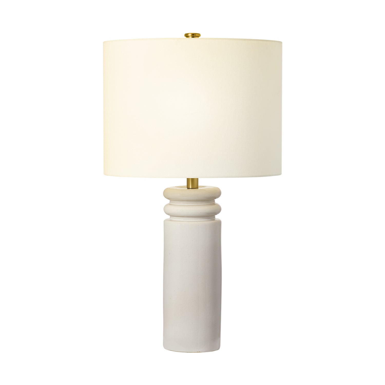 A stunning tribute to artisanal design, the Agnes Table Lamp combines the timeless beauty of handcrafted ceramics with a clean, modern form. Its cylindrical base features a subtle, carved texture and a rich, glossy white finish, offering a beautiful contrast to the crisp white linen shade. The lamp's thoughtful design effortlessly blends modern sophistication with a refined, natural aesthetic. Its versatile style allows it to stand alone as an artful focal point on a credenza or desk, or be styled in pairs to frame a bed or sofa with elegance and symmetry, bringing a layer of polished sophistication to any interior.