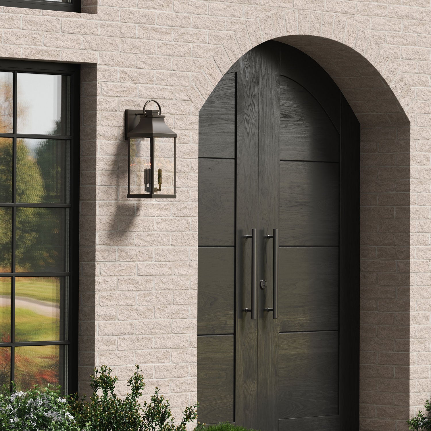 The classic beauty of the Ainsley Large Outdoor Wall Light brings timeless charm to your home's exterior with its traditional lantern silhouette and distinctive curved top. This elegant fixture captures the essence of heritage lighting with its clean rectangular frame and graceful arched canopy, creating an inviting beacon for any outdoor space. The rich oiled bronze finish beautifully complements the clear glass panels, while the signature ring handle adds an authentic touch of old-world craftsmanship. Perfect for flanking entryways, illuminating pathways, or enhancing covered porches, this versatile wall light combines enduring style with reliable performance.