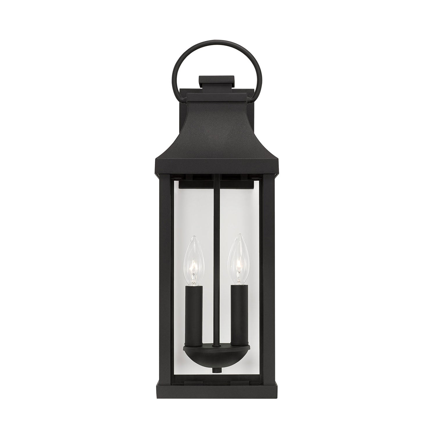 The classic beauty of the Ainsley Medium Outdoor Wall Light brings timeless charm to your home's exterior with its traditional lantern silhouette and distinctive curved top. This elegant fixture captures the essence of heritage lighting with its clean rectangular frame and graceful arched canopy, creating an inviting beacon for any outdoor space. The rich matte black finish beautifully complements the clear glass panels, while the signature ring handle adds an authentic touch of old-world craftsmanship. Perfect for flanking entryways, illuminating pathways, or enhancing covered porches, this versatile wall light combines enduring style with reliable performance.
