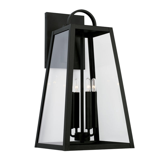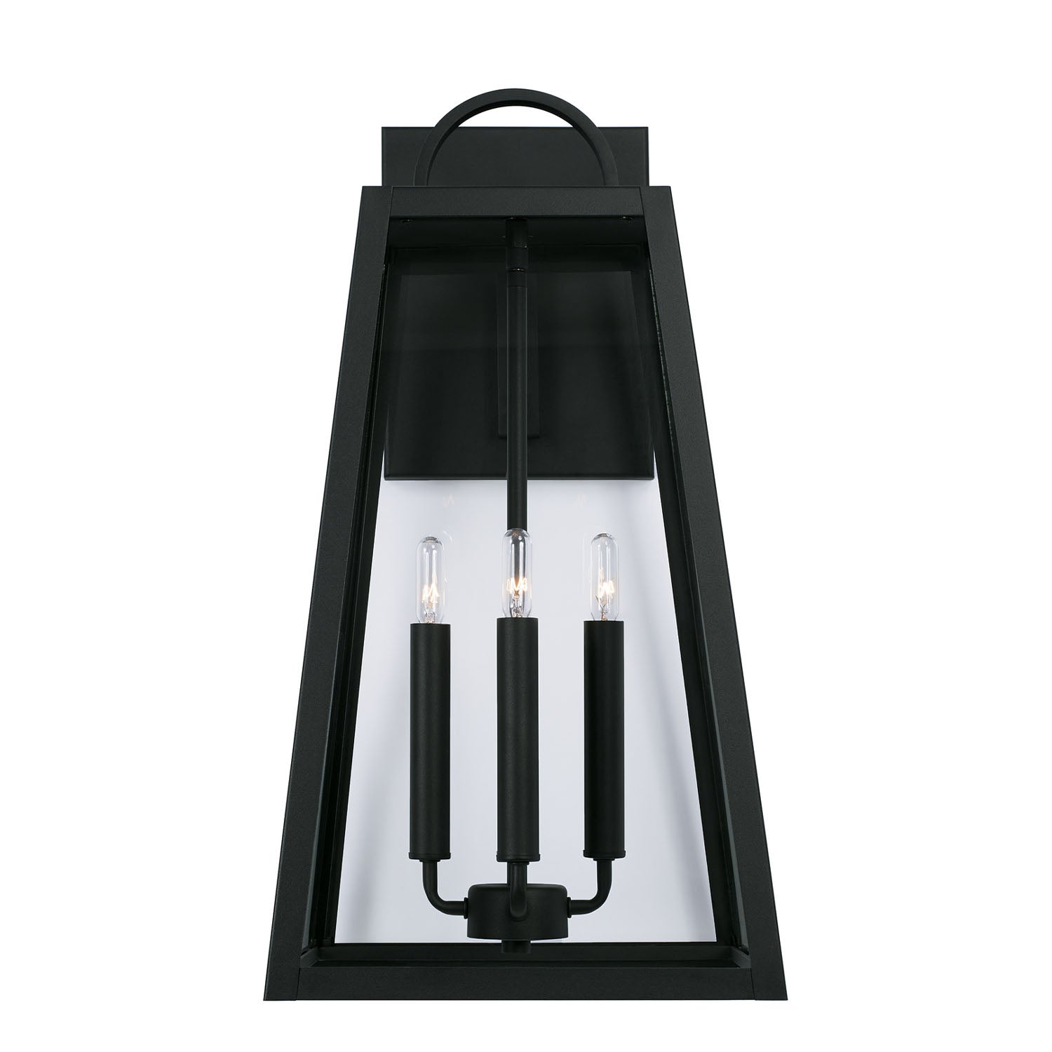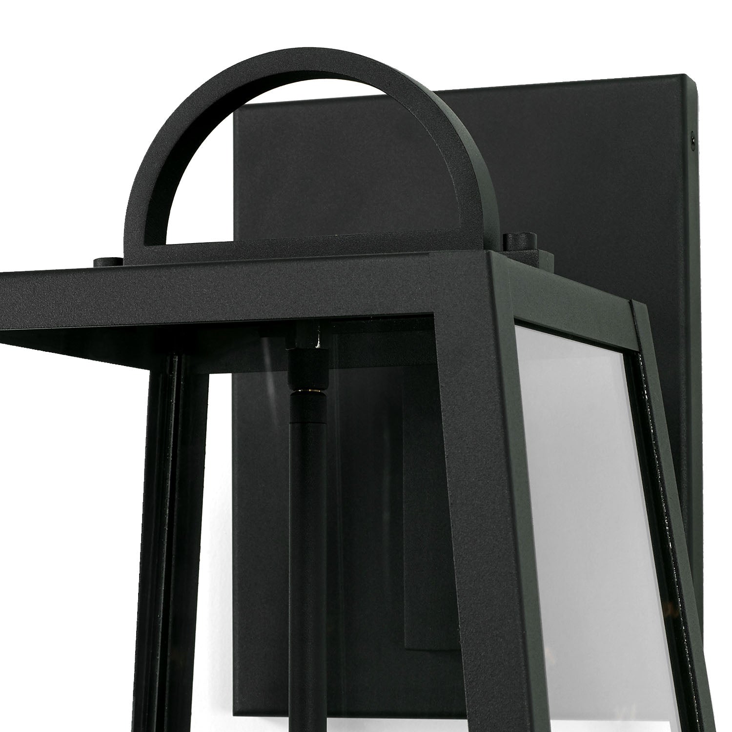 The striking geometric form of the Alden Large Outdoor Wall Light elevates your home's exterior with contemporary industrial sophistication. This sleek transitional fixture commands attention with its clean-lined tapered silhouette and clear glass panels framed in rich matte black. Perfect as a single statement piece or paired for dramatic impact, this versatile light transforms any outdoor entrance or garage area. The Alden Large Outdoor Wall Light anchors a comprehensive collection designed to unify your exterior lighting scheme.