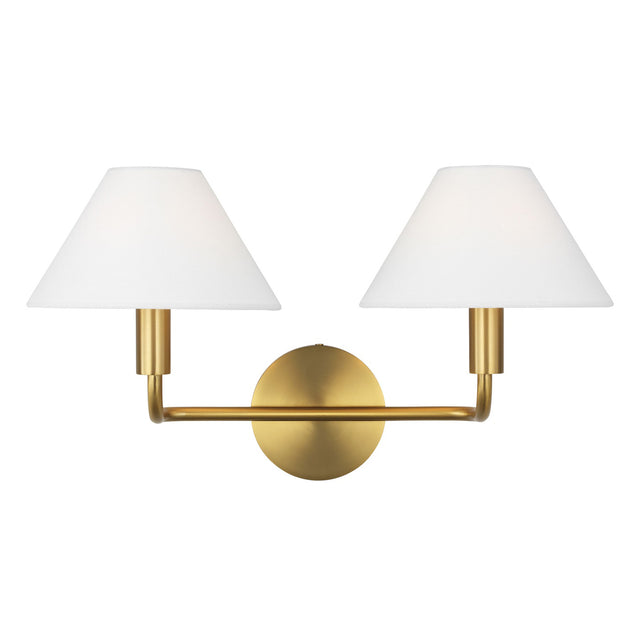 The Altair 2 Light Vanity features an elegant modern design with simple lines and distinctive details, featuring two white linen shades that create sophisticated visual interest and soft, diffused illumination throughout the space. This refined fixture combines a clean contemporary silhouette with thoughtful design elements that effortlessly accent interior decor styles of any aesthetic, perfect for bathrooms, powder rooms, and vanity areas seeking versatile lighting with timeless appeal. The modern brass finish brings warm elegance while the linen shades provide beautiful, even illumination with distinctive character. With its damp-rated construction, substantial extension, and dimmable capabilities, this gracefully designed vanity fixture transforms any space with distinctive style and performance.