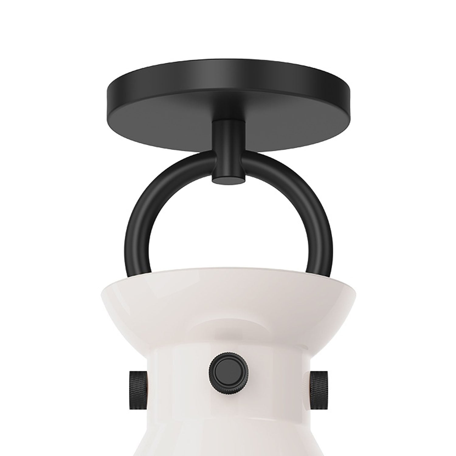 Aris Semi-Flush 9", Matte Black and Milk Glass