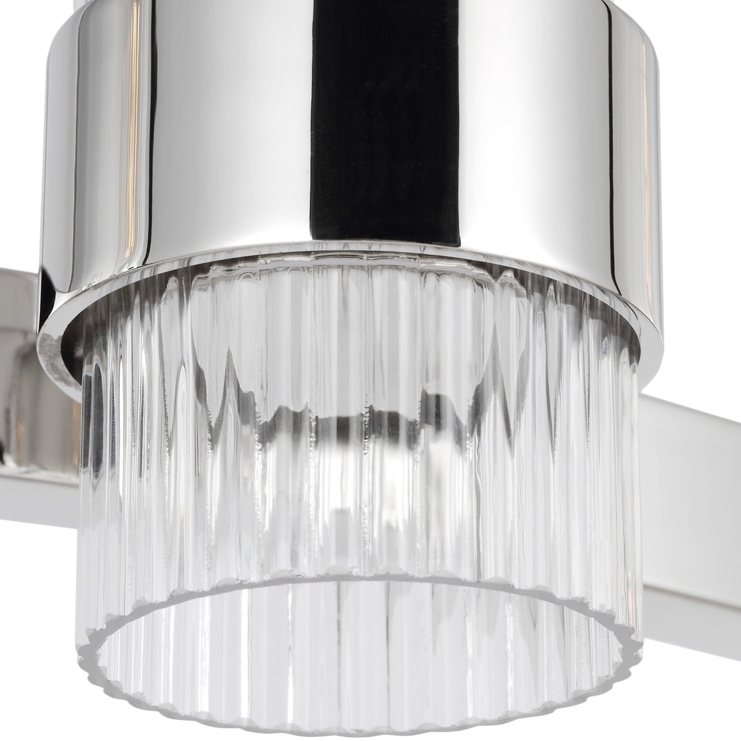 • The brilliant polished nickel finish offers a sleek, reflective sheen that complements the fluted glass shades