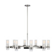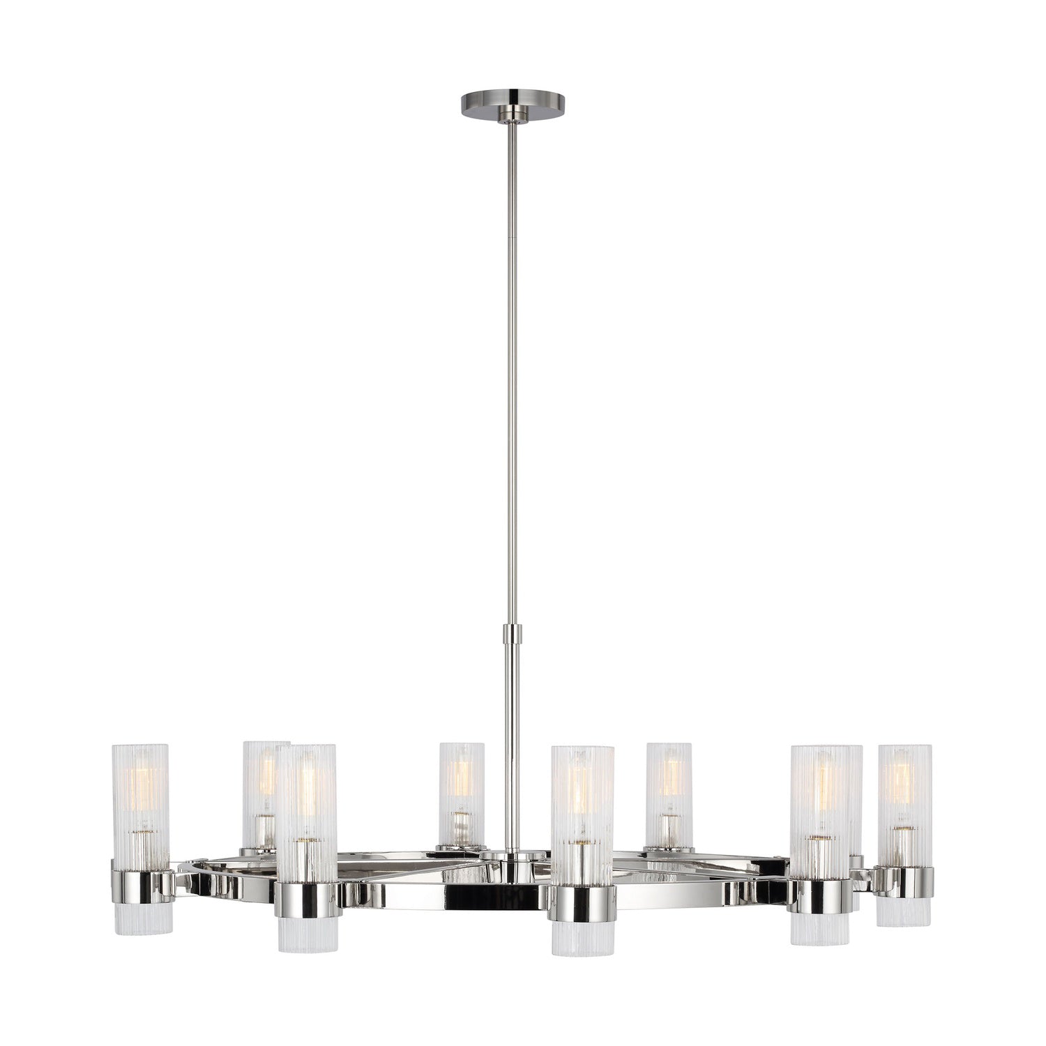The Barclay Large Chandelier makes a sophisticated statement with its elegant design. Its clean, circular form features ten clear fluted glass shades beautifully arranged around a central ring, creating a refined look that provides a beautiful, multi-directional glow. The fixture is thoughtfully designed to provide ample illumination for a grand dining room, living space, or entryway. With its ETL damp rating and sloped ceiling compatibility, it adds both functional beauty and versatile appeal to any interior. The brilliant Polished Nickel finish offers a sleek, reflective sheen that beautifully complements the fixture's elegant silhouette. This striking chandelier is a perfect blend of style and functionality, adding a touch of refined elegance to your interior.