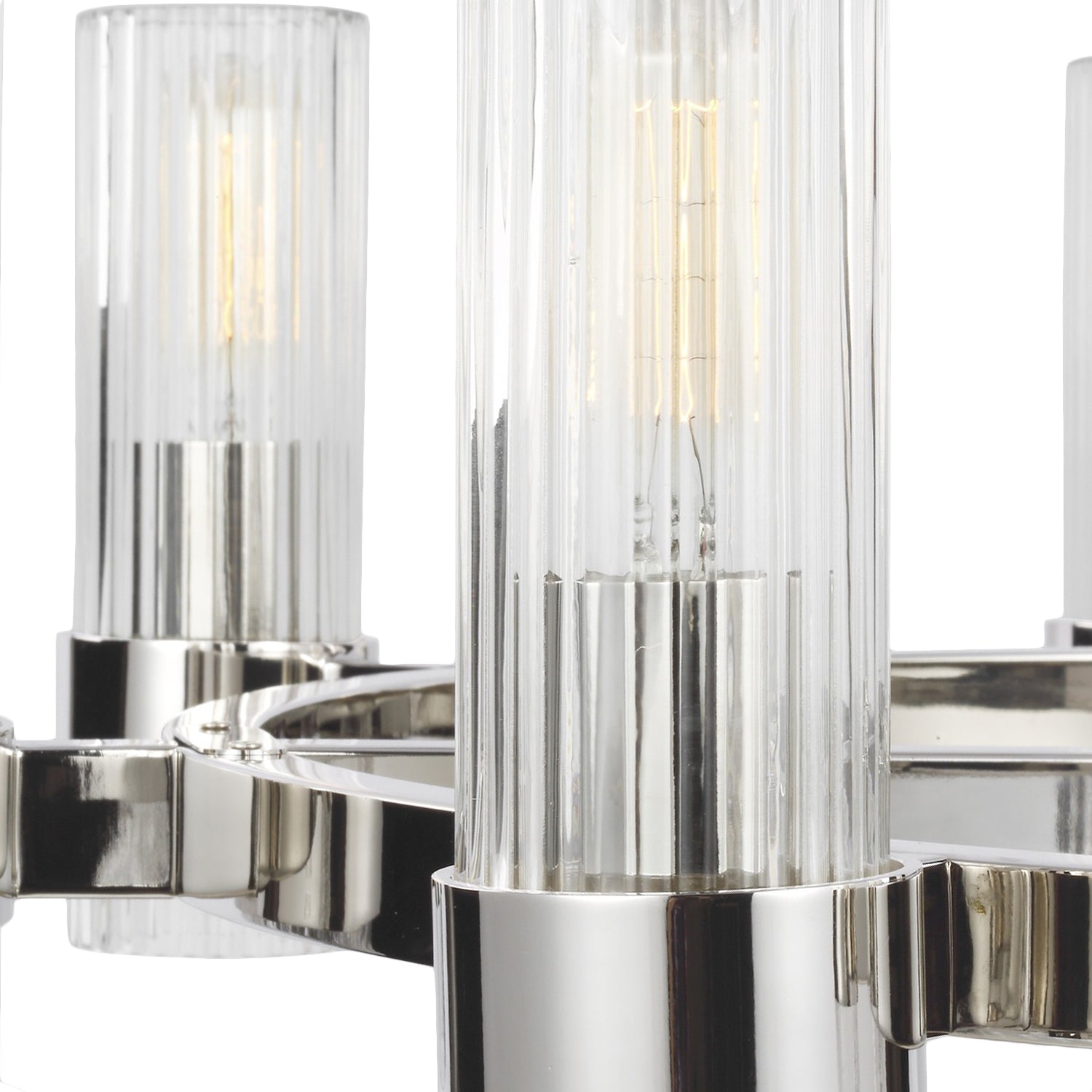 • The brilliant polished nickel finish offers a sleek, reflective sheen that complements the fluted glass shades
