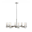 • Modern chandelier with a sleek, classic design and clear fluted glass shades