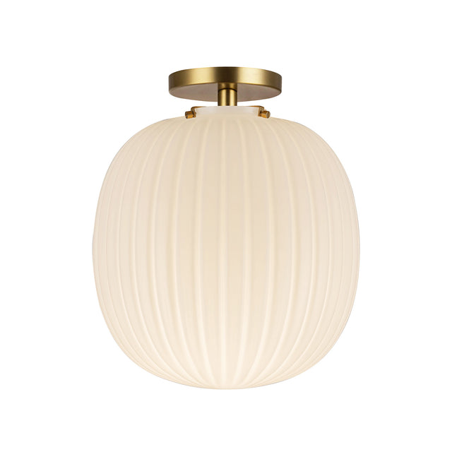 Basile Small Semi-Flush 12", Brushed Brass and Ribbed Milk Glass