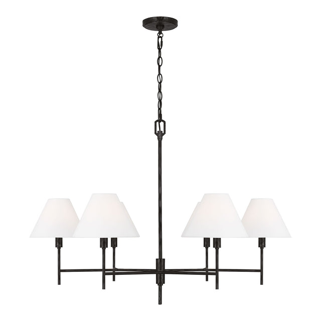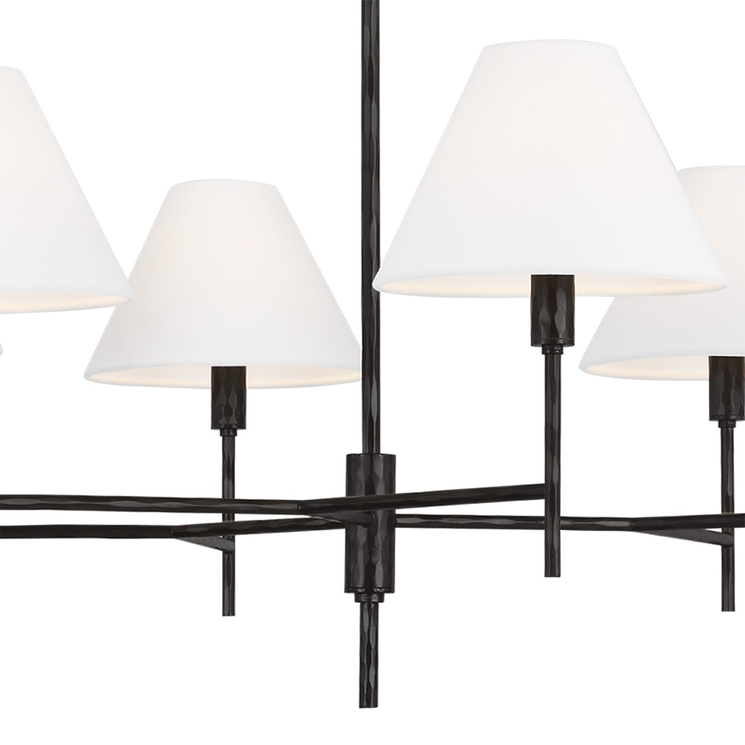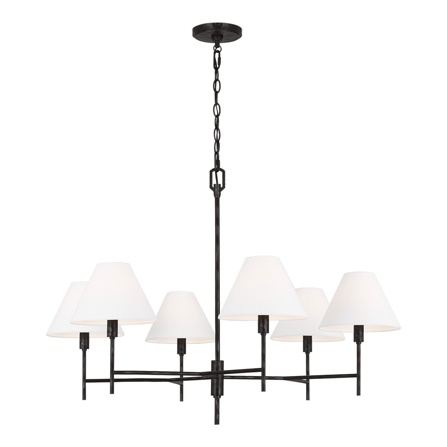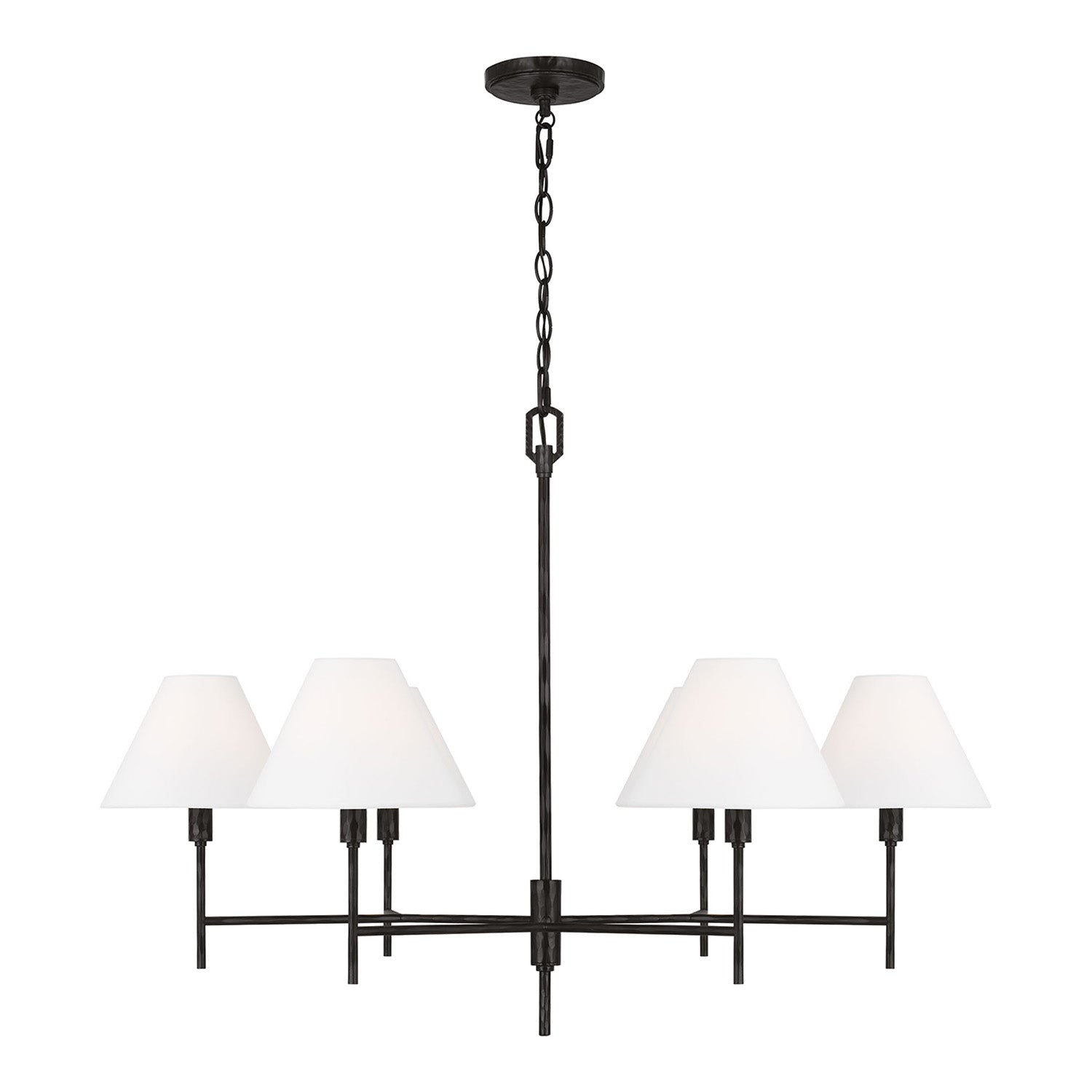 The Bryson 6 Light Chandelier is imbued with classic elegance, featuring a refined design that seamlessly complements any decor style through its timeless appeal and sophisticated presence. This versatile 36" chandelier showcases six crisp white linen shades paired with clean metal framework, creating soft, diffused illumination that enhances both traditional and contemporary interiors, perfect for dining rooms, entryways, living spaces, foyers, and areas seeking refined chandelier lighting with distinctive character. The aged iron finish creates sophisticated depth against the structured silhouette while the white linen shades provide generous ambient lighting. With its damp-rated construction and flexible hanging height, this thoughtfully designed chandelier elevates any space with classic style and reliable performance.