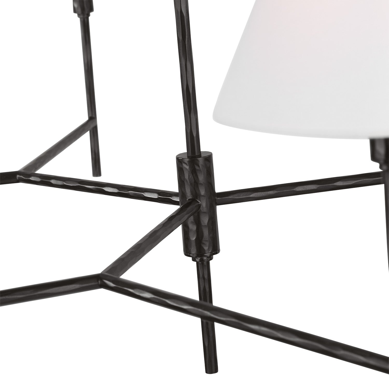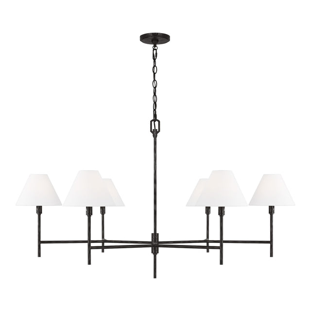 The Bryson 6 Light Chandelier is imbued with classic elegance, featuring a refined design that seamlessly complements any decor style through its timeless appeal and sophisticated presence. This impressive 48" chandelier showcases six crisp white linen shades paired with clean metal framework, creating soft, diffused illumination that enhances both traditional and contemporary interiors, perfect for grand dining rooms, large entryways, spacious living areas, great rooms, and areas seeking substantial chandelier lighting with distinctive character. The aged iron finish creates sophisticated depth against the structured silhouette while the white linen shades provide generous ambient lighting. With its damp-rated construction and extensive hanging range, this thoughtfully designed chandelier elevates any space with classic style and reliable performance.