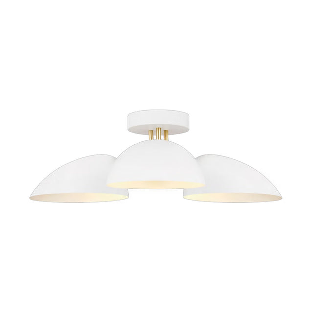 • Contemporary MCM styled semi-flush light with matte white finish featuring three shades for balanced ambient lighting