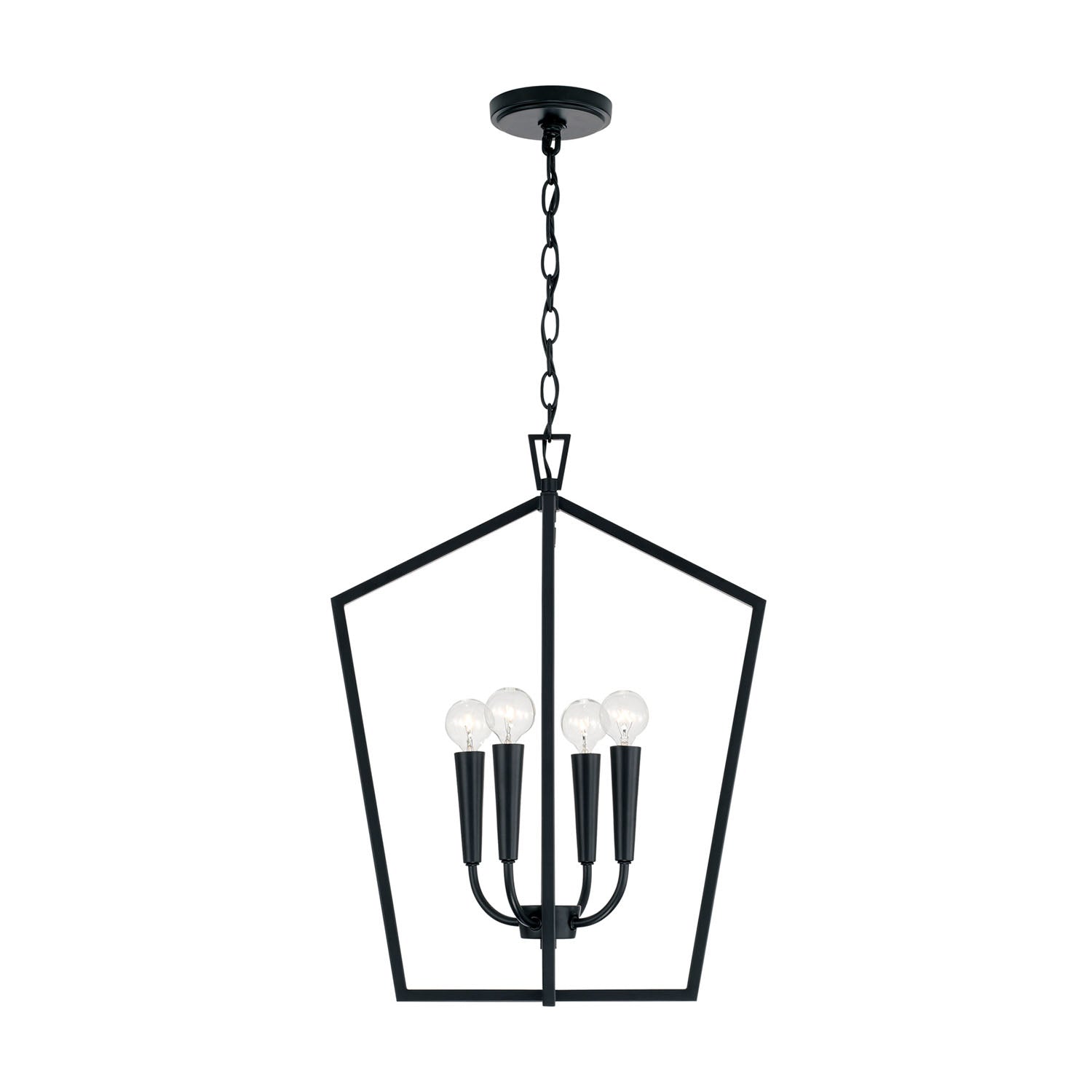 The Clara Lantern Pendant brings refined elegance to any space with its sophisticated lantern design and bold matte black finish. Featuring an open geometric frame with four candelabra bulbs, this fixture delivers brilliant illumination perfect for foyers, dining rooms, or kitchen islands. The matte black finish adds contemporary sophistication that elevates any space with refined appeal. The Clara lantern pendant combines classic design elements with modern functionality to create a versatile lighting solution that brings elegant style to your space.