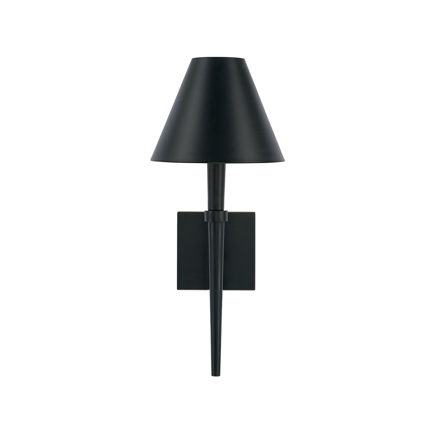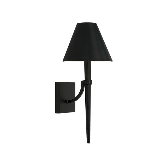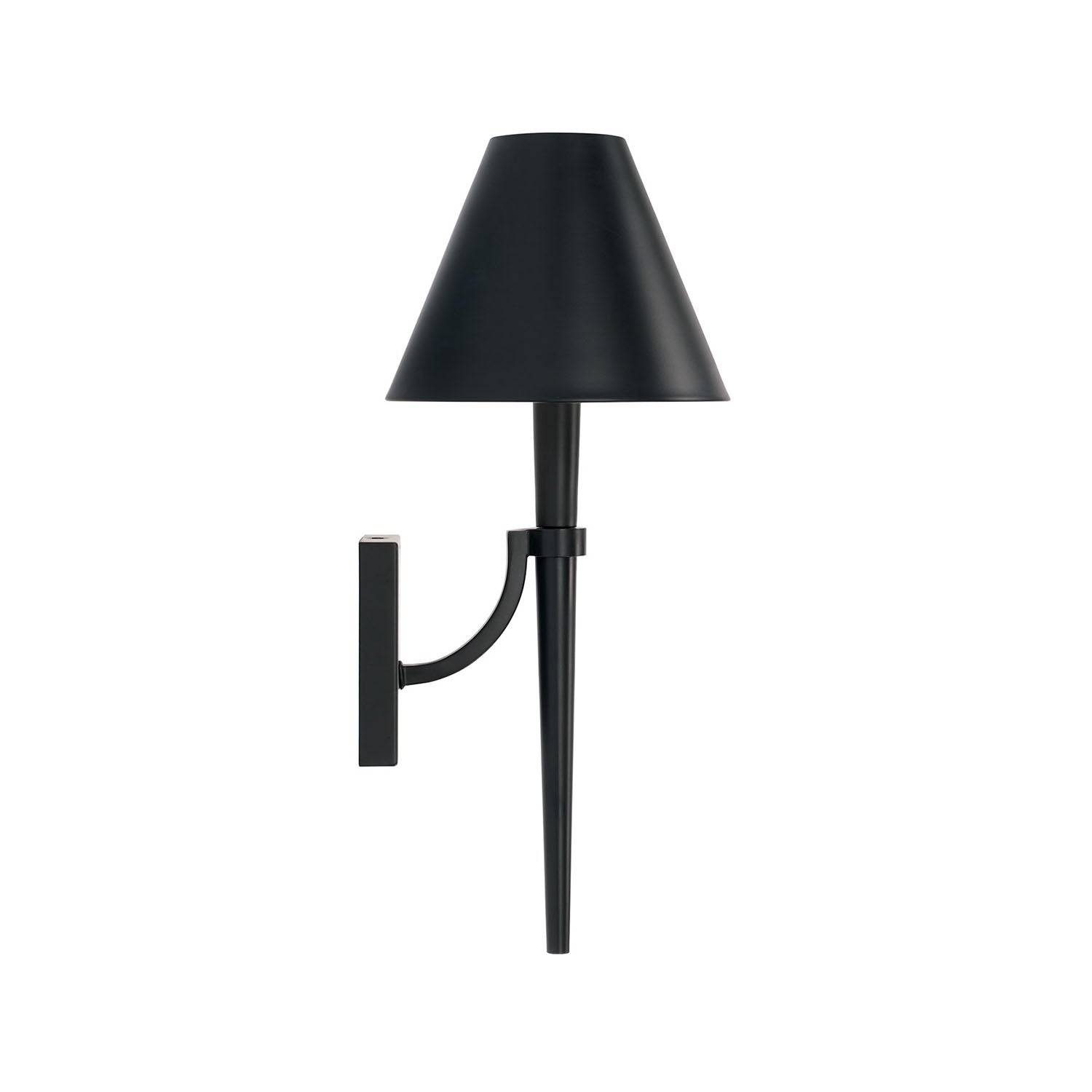 The Clara Wall Sconce brings refined elegance to any space with its sophisticated design and bold matte black finish. Featuring a classic conical shade paired with a sleek linear arm, this fixture delivers focused, directional illumination perfect for bedrooms, hallways, or reading nooks. The matte black finish adds contemporary sophistication that elevates any space with refined appeal. The Clara sconce combines classic design elements with modern functionality to create a versatile lighting solution that brings elegant style to your space.