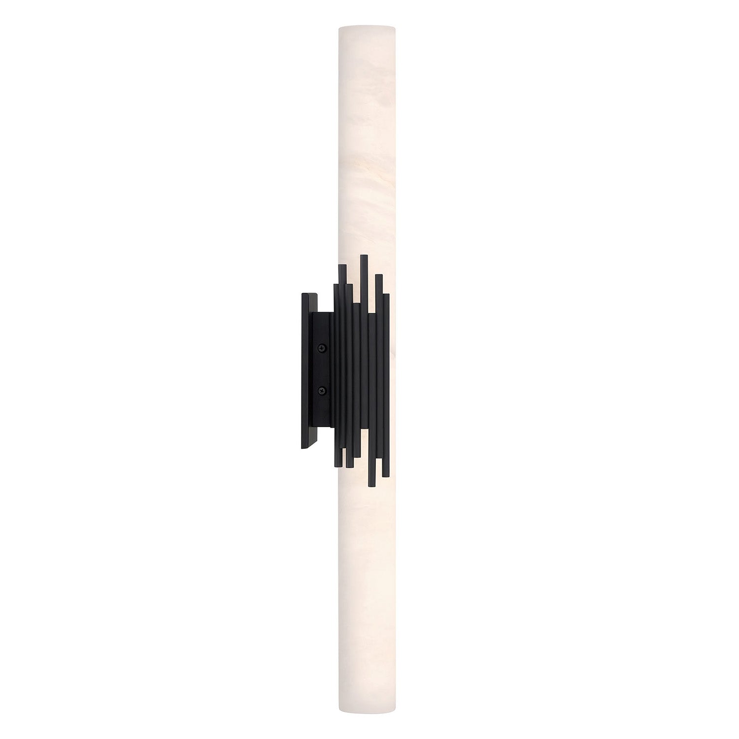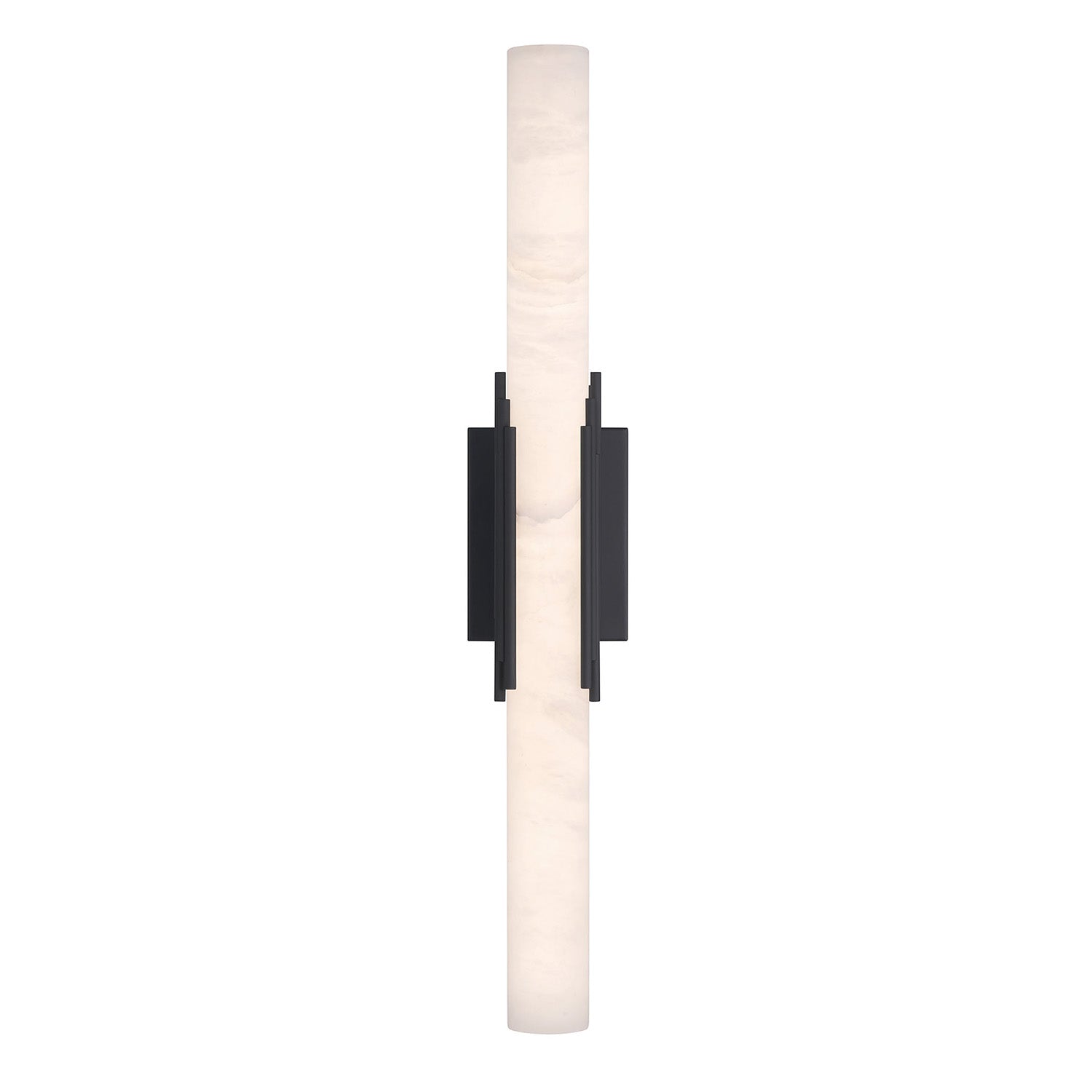 The Delya LED Wall Sconce brings sophisticated warmth to any space with its distinctive Art Deco design and alabaster shade. This captivating fixture features a natural alabaster cylinder that showcases the stone's intricate veining and natural patterns when illuminated from within, elegantly supported by rich urban bronze metal brackets. The striking contrast between the organic beauty of the alabaster and the deco metal framework creates a perfect balance of durability and ethereal elegance. At 28" in height with integrated LED technology and ADA-compliant design, this sconce makes a refined statement while providing years of reliable illumination for indoor or outdoor applications.