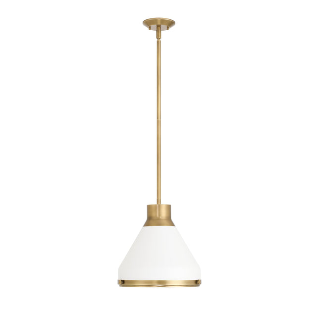 Drew Small Pendant 13", Matte White and Aged Brass