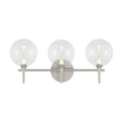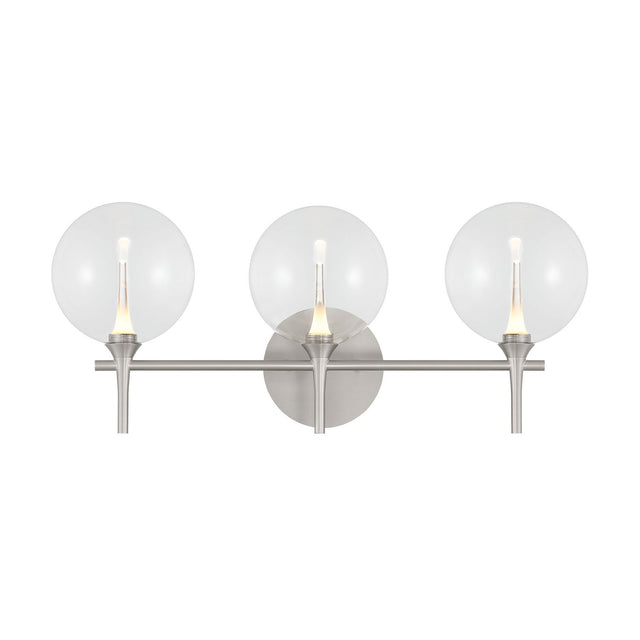 The Eaton LED 3 Light Vanity brings refined elegance to any bathroom with its sleek linear design and sophisticated satin nickel finish. This captivating fixture features three clear glass globes positioned along a clean satin nickel bar, creating brilliant task illumination perfect for vanity spaces and daily routines. The refined satin nickel structure and clear glass spheres deliver contemporary luxury with minimalist sophistication. At 23.5" wide with integrated LED technology, this vanity light makes a statement while providing decades of energy-efficient operation.
