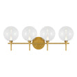The Eaton LED 4 Light Vanity brings refined elegance to any bathroom with its sleek linear design and warm brass finish. This captivating fixture features four clear glass globes positioned along a clean brass bar, creating brilliant task illumination perfect for vanity spaces and daily routines. The refined brass structure and clear glass spheres deliver contemporary luxury with minimalist sophistication. At 29.5" wide with integrated LED technology, this vanity light makes a statement while providing decades of energy-efficient operation.