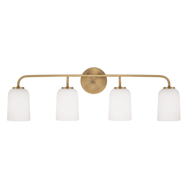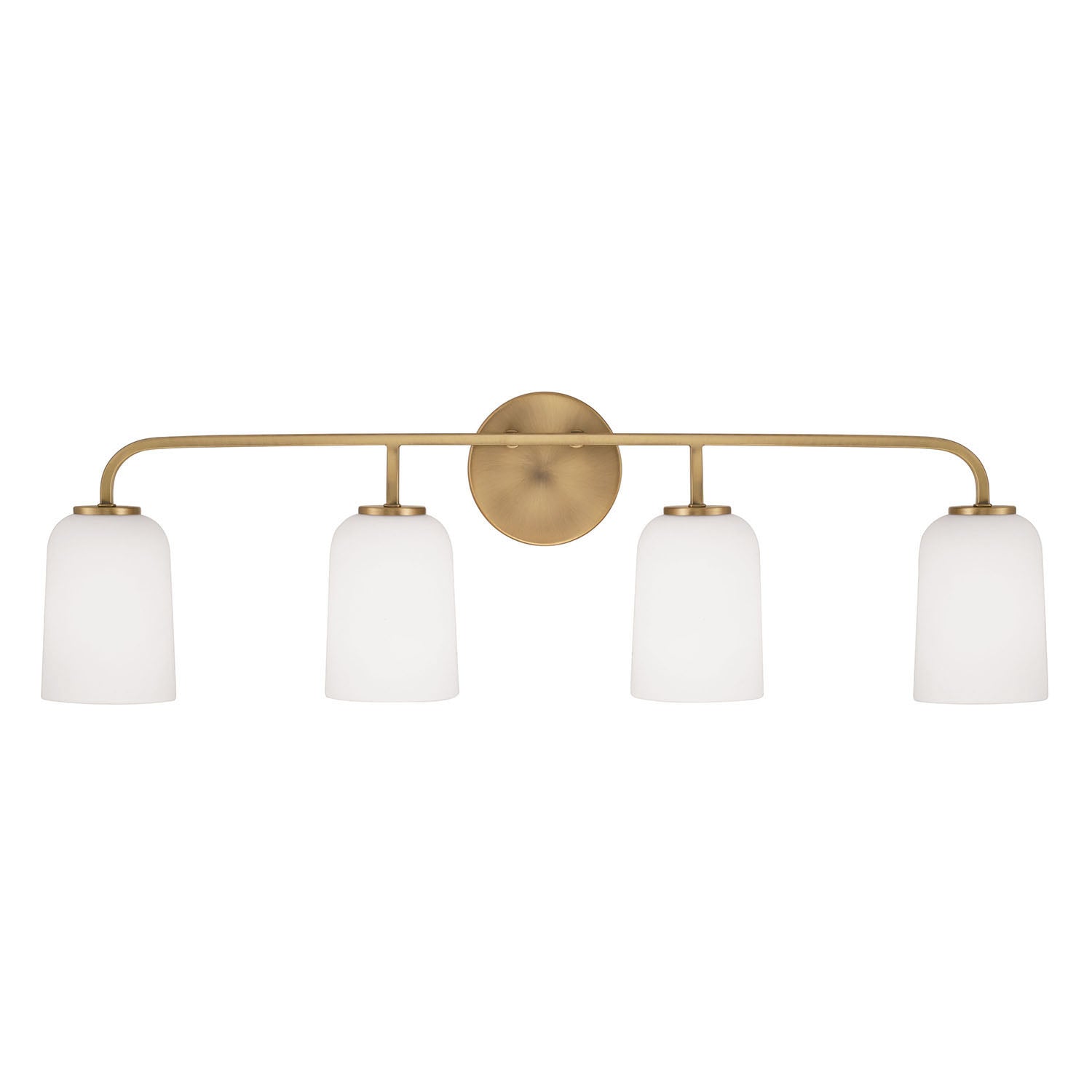 The Elira 4 Light Vanity brings timeless elegance to your bathroom with its classic design and warm aged brass finish. Featuring four opal glass shades mounted on a sleek linear frame, this fixture delivers bright, even illumination perfect for daily grooming and self-care routines. The warm aged brass finish adds rich metallic warmth that elevates any vanity space, while the classic proportions provide optimal task lighting without harsh shadows. The Elira vanity light combines versatile styling with enduring design to create a distinctive lighting solution that transforms your bathroom with classic sophistication.