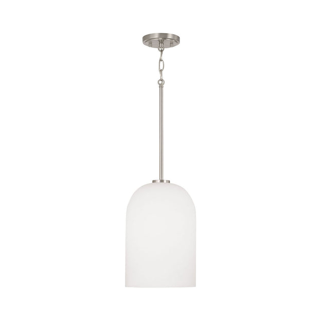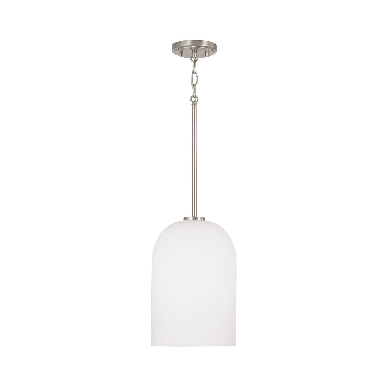 • Classic design with brushed nickel finish featuring an elegant stem and an opal glass dome shade