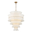The Brielle 21 Light Chandelier brings sophistication to any interior space with its commanding multi-tiered glass design and luxurious aged brass finish. This spectacular fixture features cascading layers of curved, white art glass arranged in grand tiers, with brass framework supporting each glass element, creating a grand visual impact. The design delivers contemporary magnificence, perfect for large dining rooms, foyers, great rooms, and interiors seeking statement lighting with exceptional character. The fixture creates extraordinary light diffusion as illumination from 21 sources filters through multiple glass layers, producing radiant ambient lighting with monumental beauty. At 30" diameter with adjustable height and dry-rated construction, this chandelier makes a spectacular statement that brings grandeur to any interior.