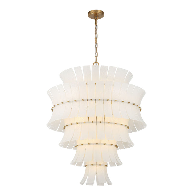 Brielle 21 Light Chandelier 30", White Art Glass with Aged Brass