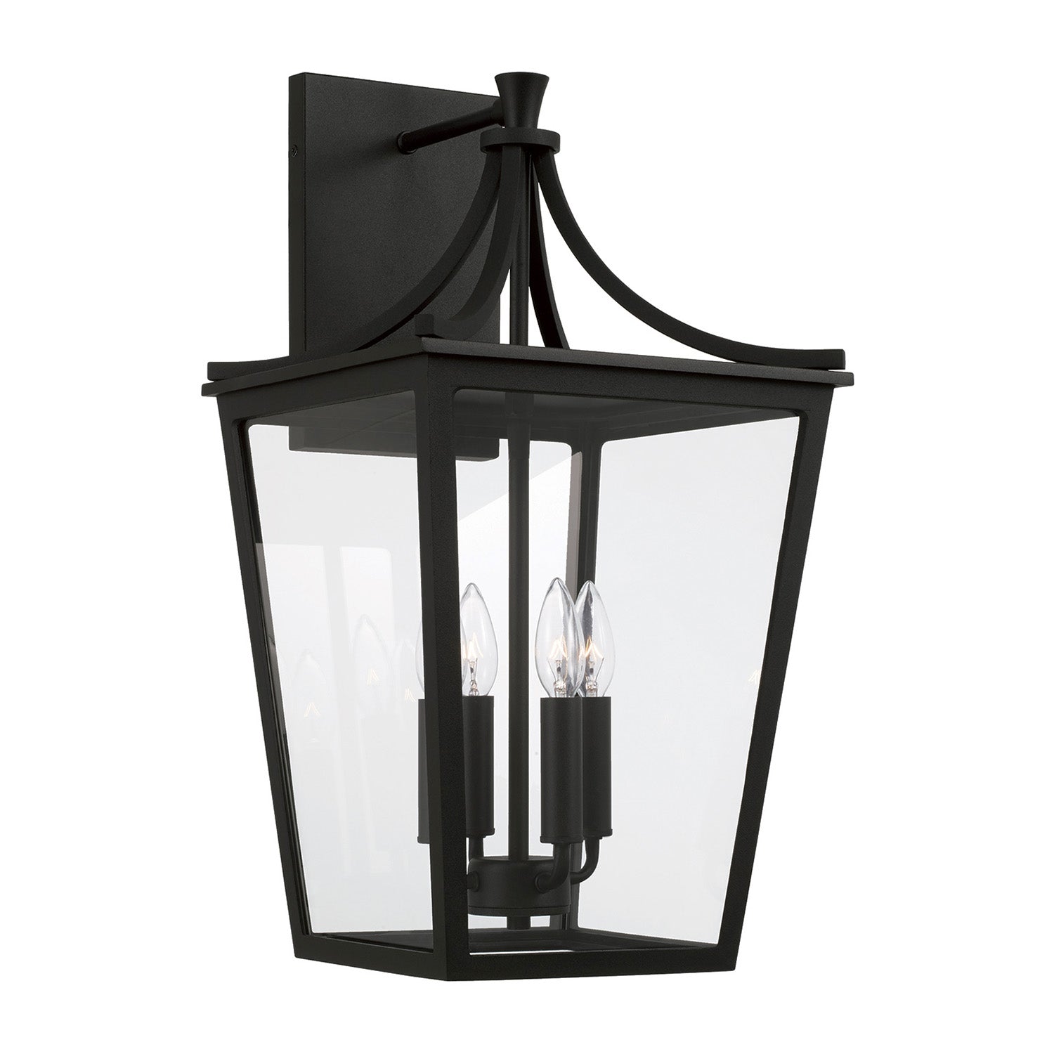 Bold architectural curves meet modern minimalism in the Ellery Large Outdoor Wall Light, transforming your exterior with its striking sculptural lantern design. This captivating fixture showcases dramatic curved supports that flow gracefully from the wall, creating dynamic visual movement while supporting a sleek tapered lantern. The clear glass side panels and rich matte black finish deliver contemporary sophistication that makes a statement without overwhelming your space. Ideal for modern or traditional homes seeking distinctive lighting with architectural impact, this fixture elevates any entrance or outdoor area with its unique blend of form and function.