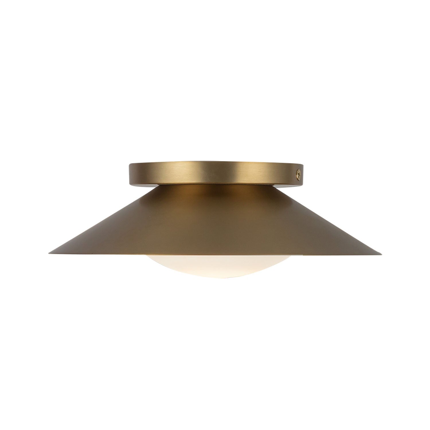 • Modern, timeless design with oversized opal glass diffuser framed by an elegant disc shade in brushed brass finish