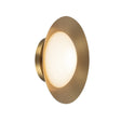 The Elon LED Wall Sconce brings modern elegance to any interior space with its elegant circular design and warm brushed brass finish. This refined fixture features an oversized opal glass diffuser beautifully framed by an elegant disc shade that creates stunning visual depth and gentle, diffused illumination. The integrated LED technology provides warm 3000K illumination at 90 CRI through the opal glass, producing exceptional color rendering with energy-efficient performance. At 9" diameter with ADA-compliant design and compact 3" extension, this wall sconce makes an elegant statement that brings timeless design and refined lighting to any interior.