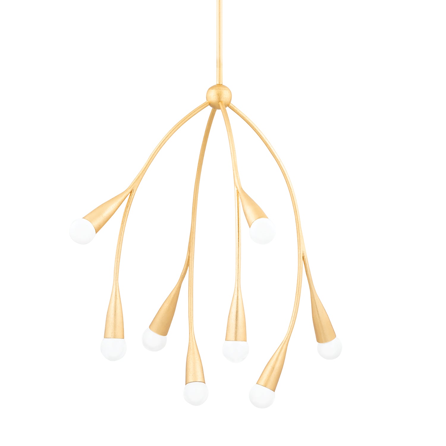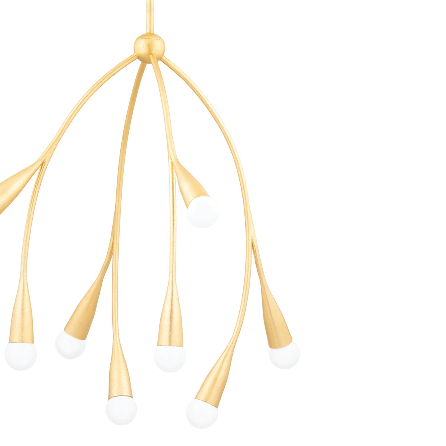 • Sculptural chandelier featuring eight branching gold leaf arms extending from a central sphere for an organic, botanical-inspired look