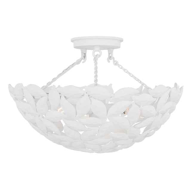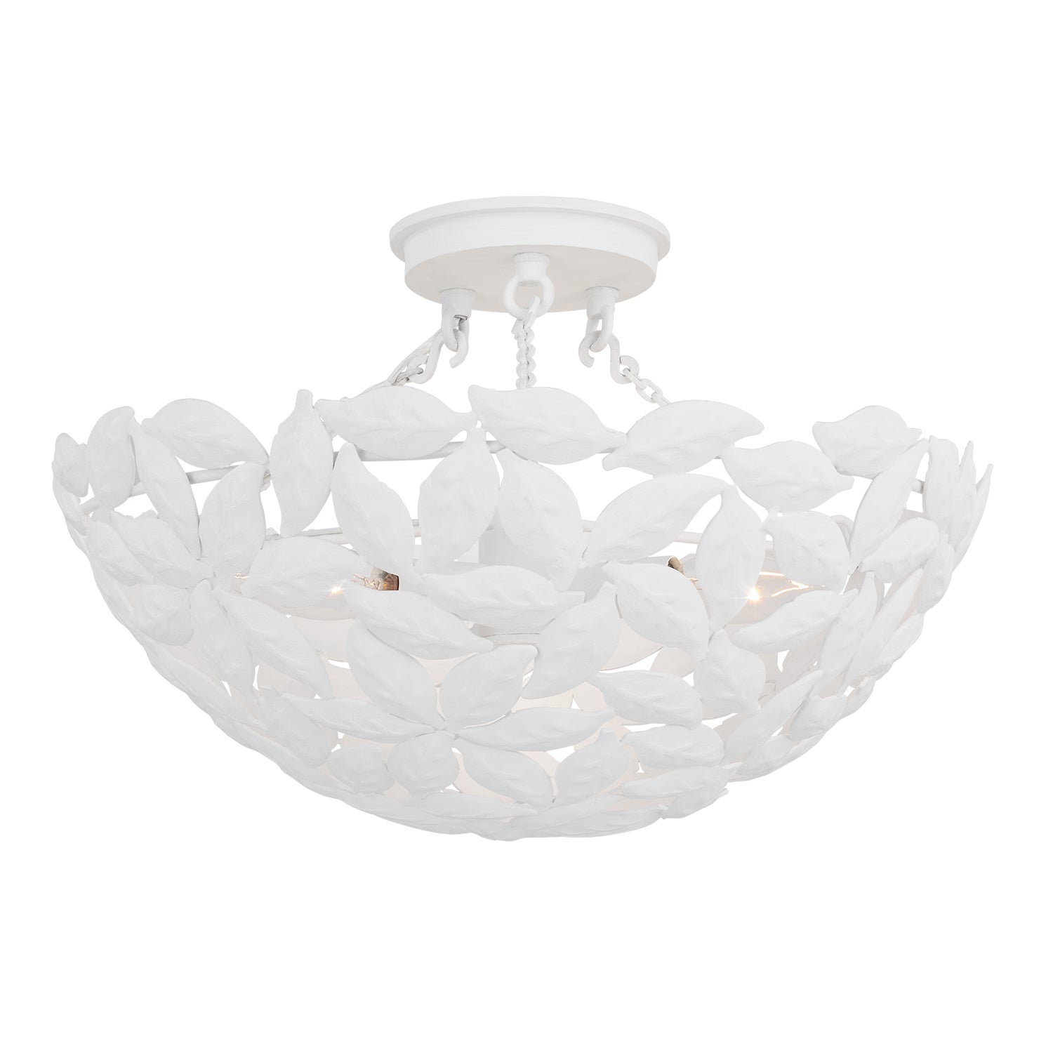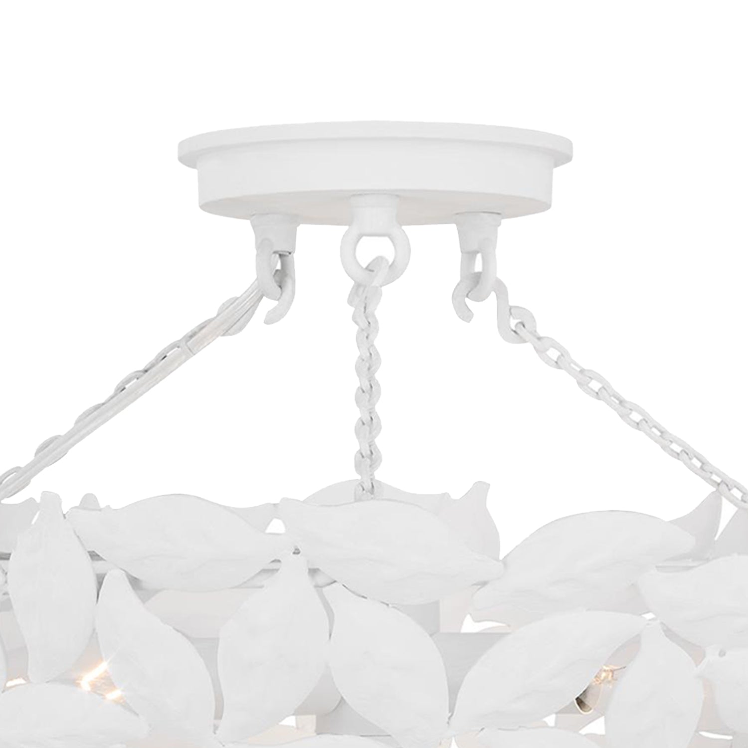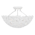 • Contemporary semi-flush with textured white finish featuring an intricate leaf motif for organic elegance