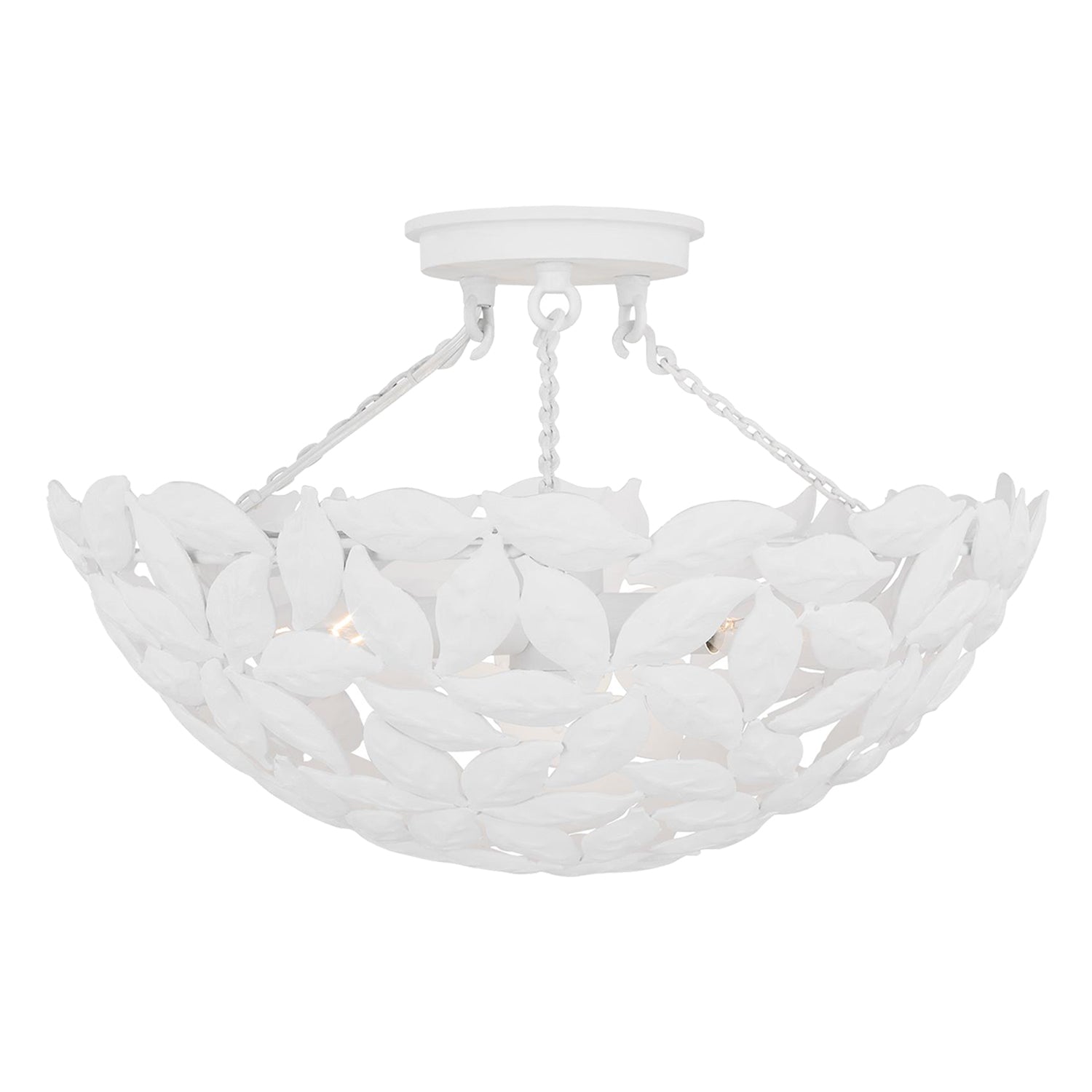 The Floren Semi-Flush brings vintage-inspired elegance to any space with its elegant leaf motif and graceful bowl silhouette that instantly elevates interiors with classic appeal. This beautifully detailed fixture features meticulous craftsmanship that creates a captivating focal point with timeless sophistication. Perfect for bedrooms, hallways, and spaces with lower ceilings where radiant beauty meets enduring style. The textured white finish adds refined elegance that enhances the intricate leaf detailing, while the classic bowl design provides beautiful ambient illumination. With its elegant craftsmanship and vintage-inspired design, this semi-flush brings radiant beauty to any interior.