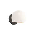 The Flynn 1 Light Wall Sconce offers a refined, minimalist approach to modern wall lighting. This compact fixture features a single opal glass orb that appears to emerge from a circular matte black backplate, creating a clean, sculptural profile. The milky white globe houses a concealed bulb, providing soft, diffused illumination with a warm glow. With a 6-inch extension from the wall, this sconce adds a touch of elegant sophistication without overwhelming the space. Its damp-rated construction and versatile aesthetic make it ideal for bathrooms, hallways, or flanking a mirror or artwork, adding a touch of refined modern charm to any interior.