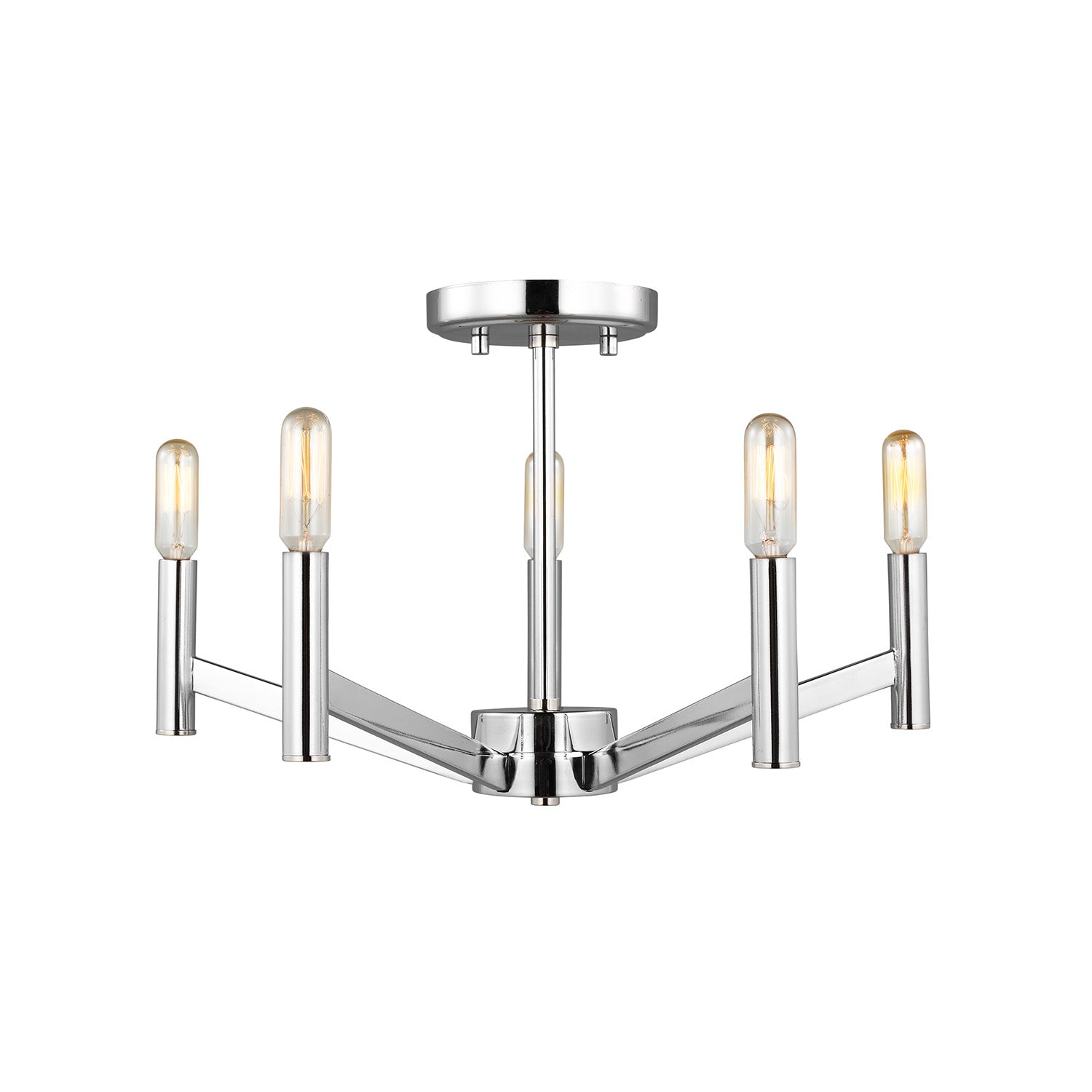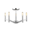 The Foster Semi-Flush brings mid-century modern style to your space with its clean lines and minimalist design that supplies ample lighting for your daily needs. This thoughtfully designed fixture captures the essence of mid-century aesthetics through its simple straight-line construction and understated elegance, creating timeless appeal that enhances any interior. Perfect for bedrooms, hallways, and spaces with lower ceilings where functional lighting meets classic design. The chrome finish provides bright sophistication that complements both vintage-inspired and contemporary interiors while the five-light configuration delivers enhanced illumination. With its enduring mid-century appeal and quality construction, this semi-flush brings refined elegance to any environment.