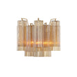 • Striking wall sconce featuring cascading topaz textured Tronchi glass tubes in a refined brass framework for elegant light diffusion