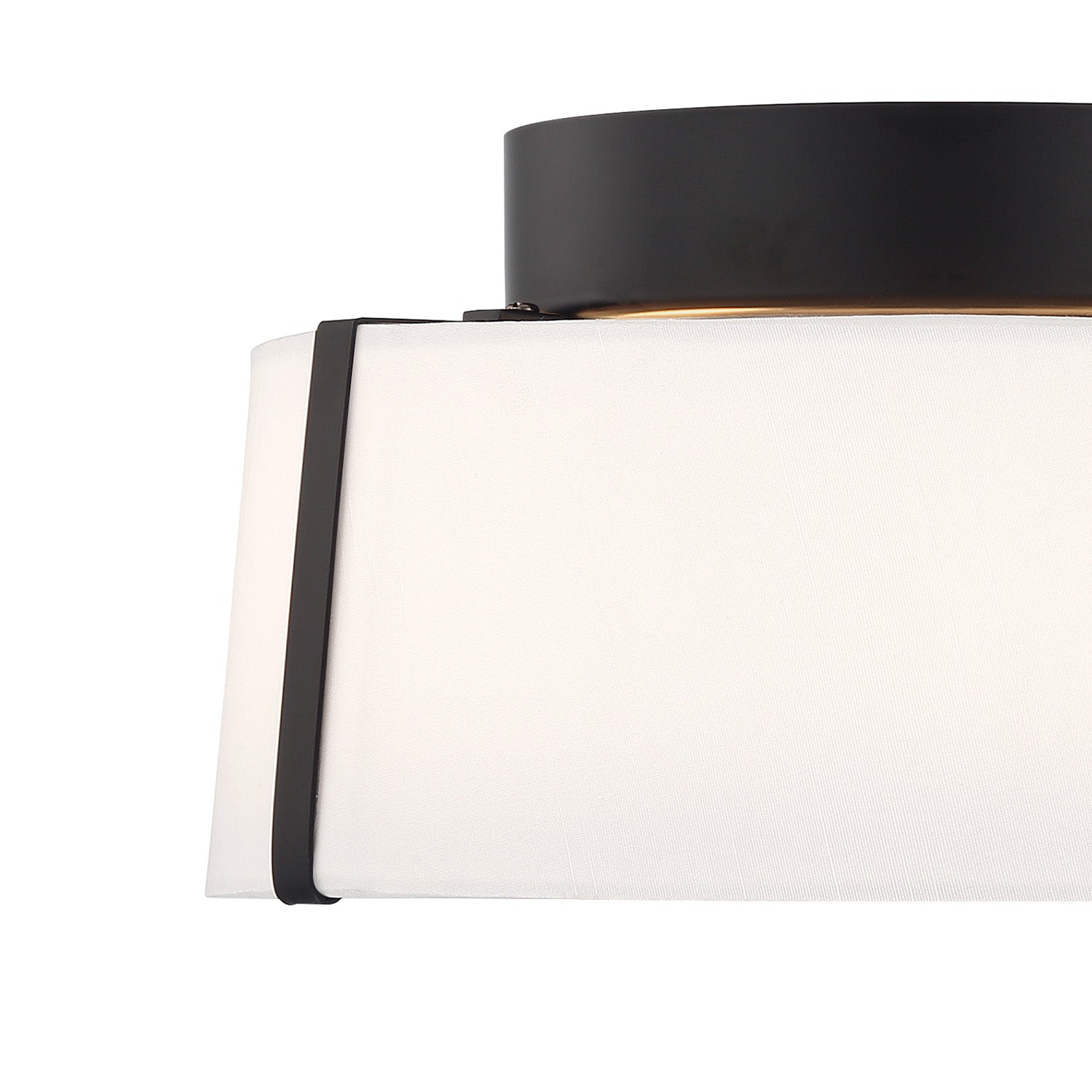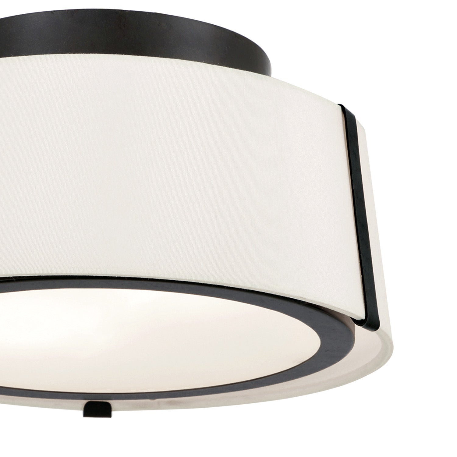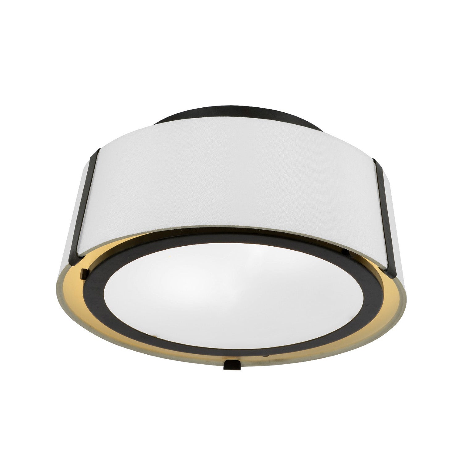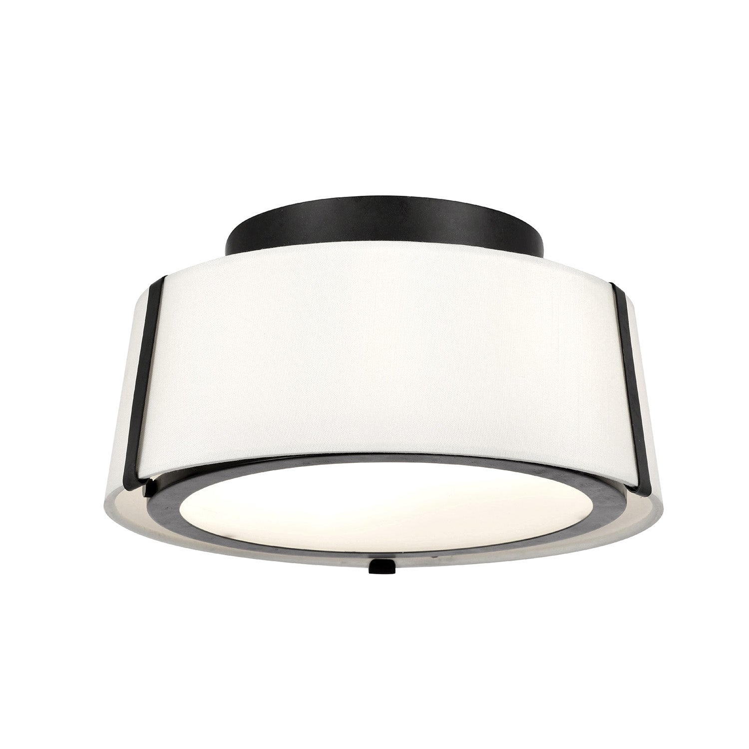 The Hoyt Flush Mount elevates your home with an integration of architectural elements and sophisticated materials. This compact fixture features a distinctive double white silk shade composition, where the interior layer is elegantly defined by a black ring securing a glass diffuser. At a perfectly proportioned 12" diameter, this flush mount delivers generous light distribution ideal for hallways, bedrooms, or powder rooms with lower ceiling heights. The modern black finish introduces subtle luxury, while the luminous silk shade produces a gentle, evenly dispersed glow that eliminates harsh shadows. The Hoyt's design moves effortlessly between classic and contemporary interior styles, bringing architectural refinement to intimate spaces.