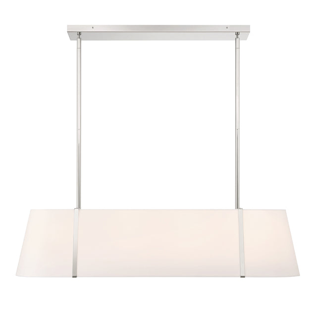 The Hoyt 42" Linear Pendant redefines architectural lighting with its sophisticated fusion of minimalist design and luxurious materials. This statement fixture features an elongated oval silhouette with an innovative double white silk shade construction, elegantly accented by an interior polished nickel ring that secures the glass diffuser. The thoughtful engineering creates a balance between structural elements and soft illumination. With its commanding 41.75" width, this pendant delivers expansive light distribution ideal for rectangular dining tables, kitchen islands, or executive conference spaces. The sophisticated polished nickel finish elevates the clean-lined design. The luminous silk shade produces a gentle, flattering glow that enhances both casual gatherings and formal entertaining. The Hoyt's transitional style brings understated elegance to your home.