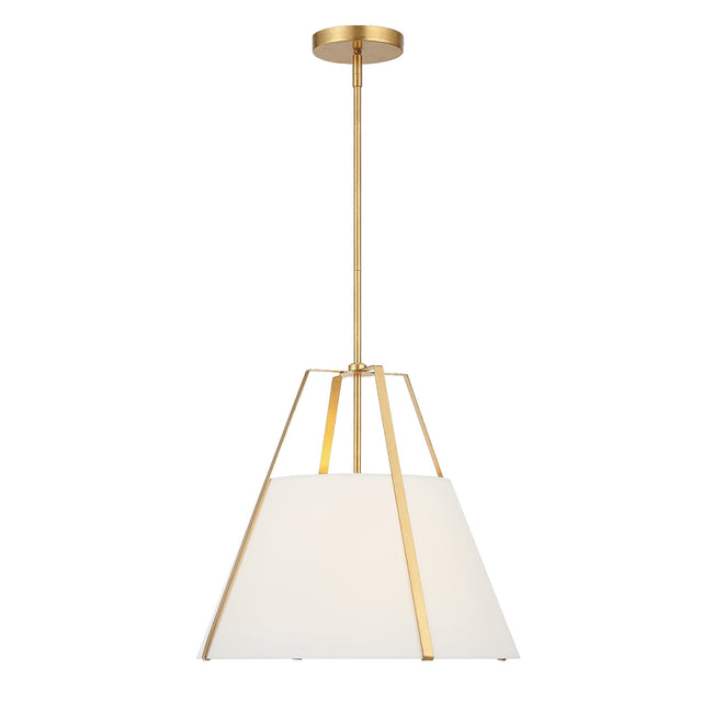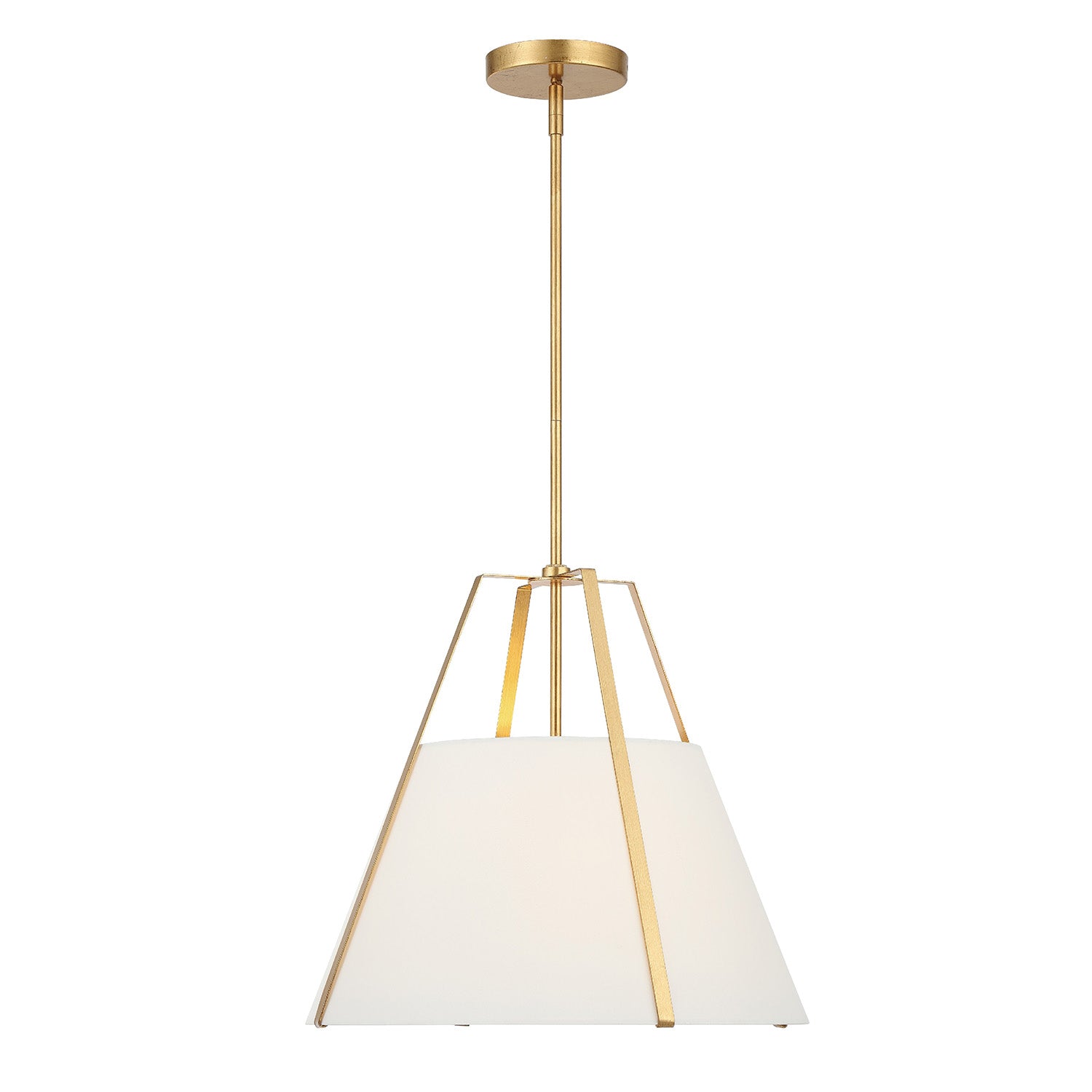 The Hoyt Pendant redefines traditional pendant lighting with its sophisticated balance of structured minimalism and refined details. This distinctive fixture showcases an innovative double white silk shade construction, with the interior shade elegantly trimmed by a sculptural antique gold ring that secures a glass diffuser. This thoughtful engineering creates a clean, architectural aesthetic with effortless elegance. With its impressive 20" diameter and substantial 18.5" height, this generously scaled pendant produces rich, ambient illumination perfect for enhancing dining settings, kitchen islands, or entryway spaces. The warm antique gold finish introduces luxurious depth that complements diverse interior aesthetics from classic to contemporary transitional. With its versatile design and perfectly balanced proportions, the Hoyt pendant transforms your space with understated sophistication.