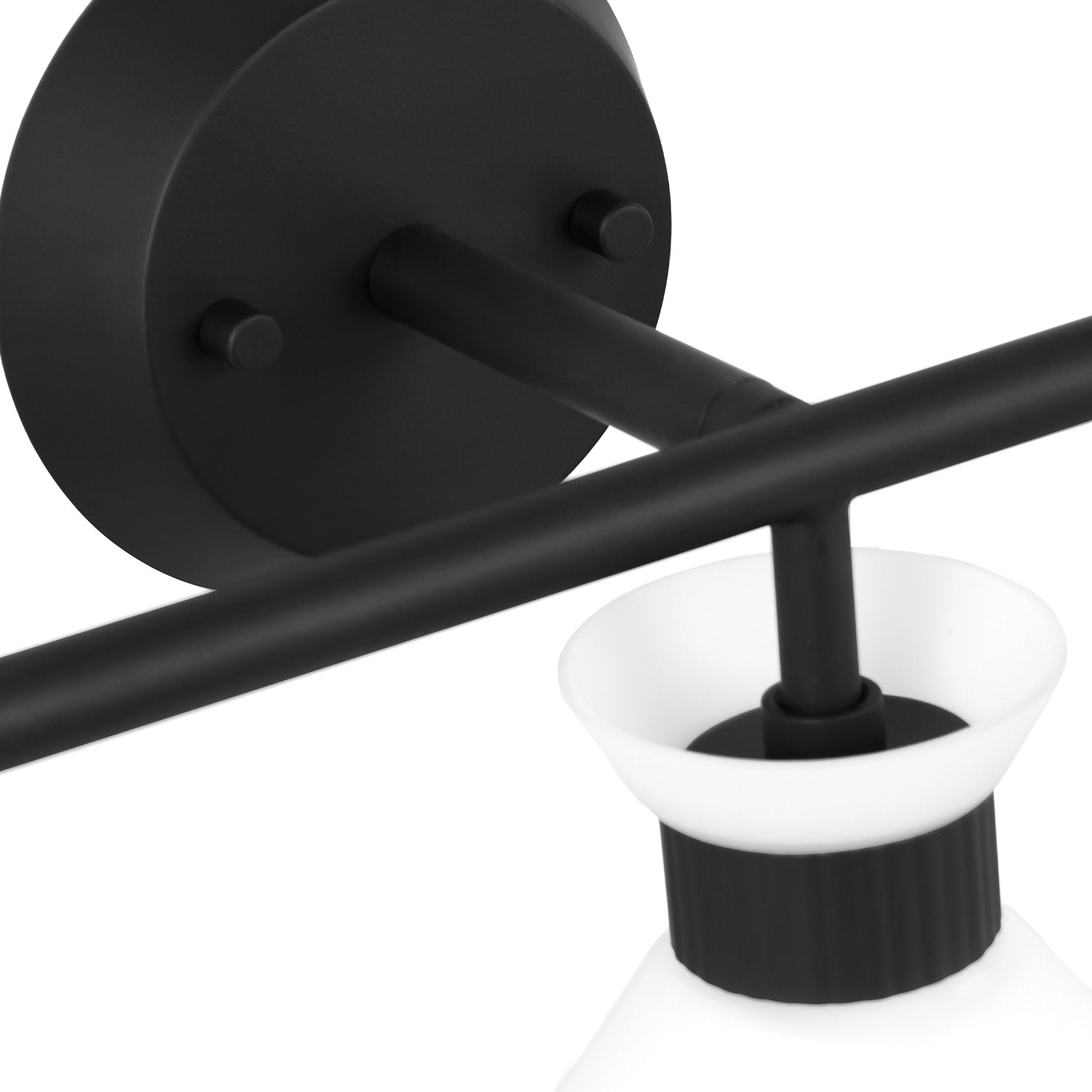 • Matte black finish with etched white glass complements contemporary and modern interiors
