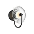 • Features a clear ribbed glass disc with curved Matte Black arm and opal glass LED sphere