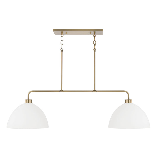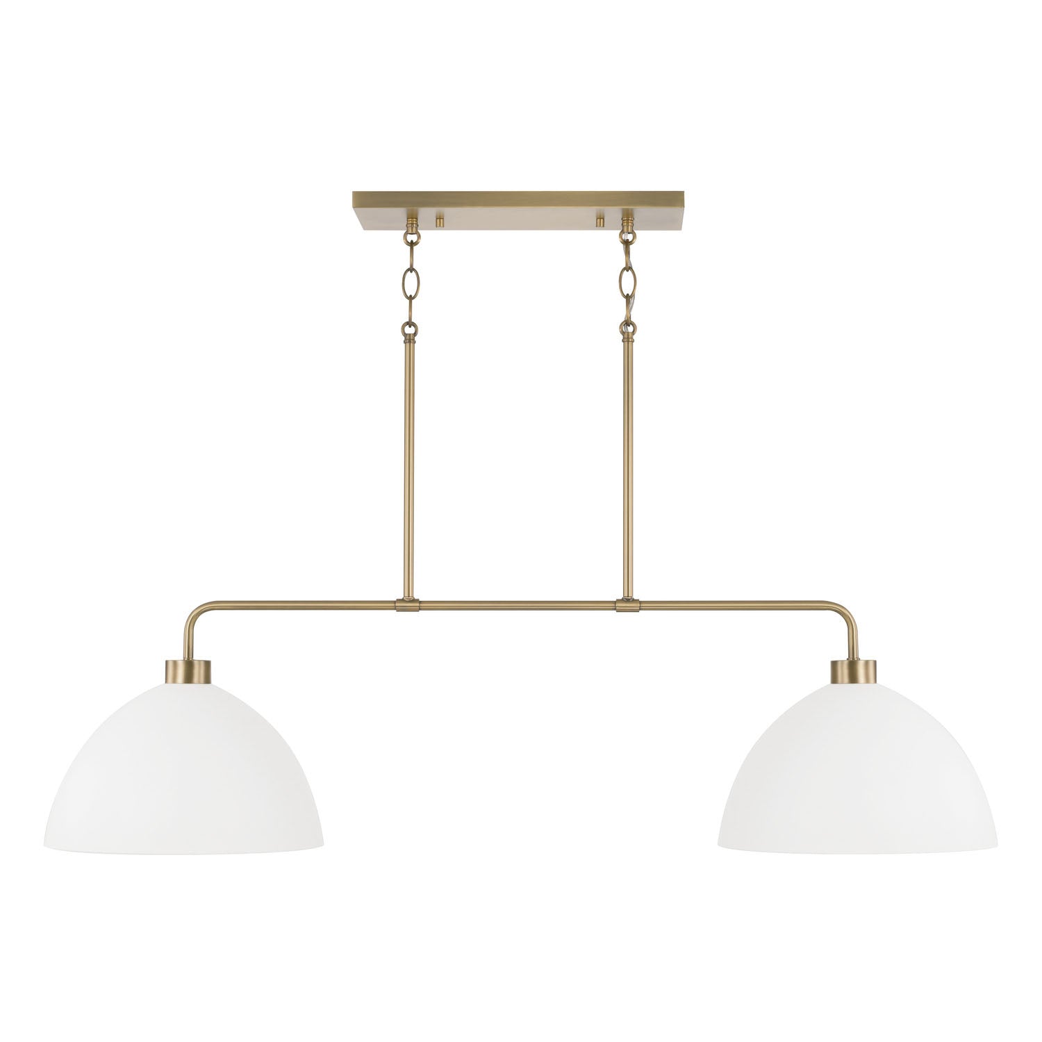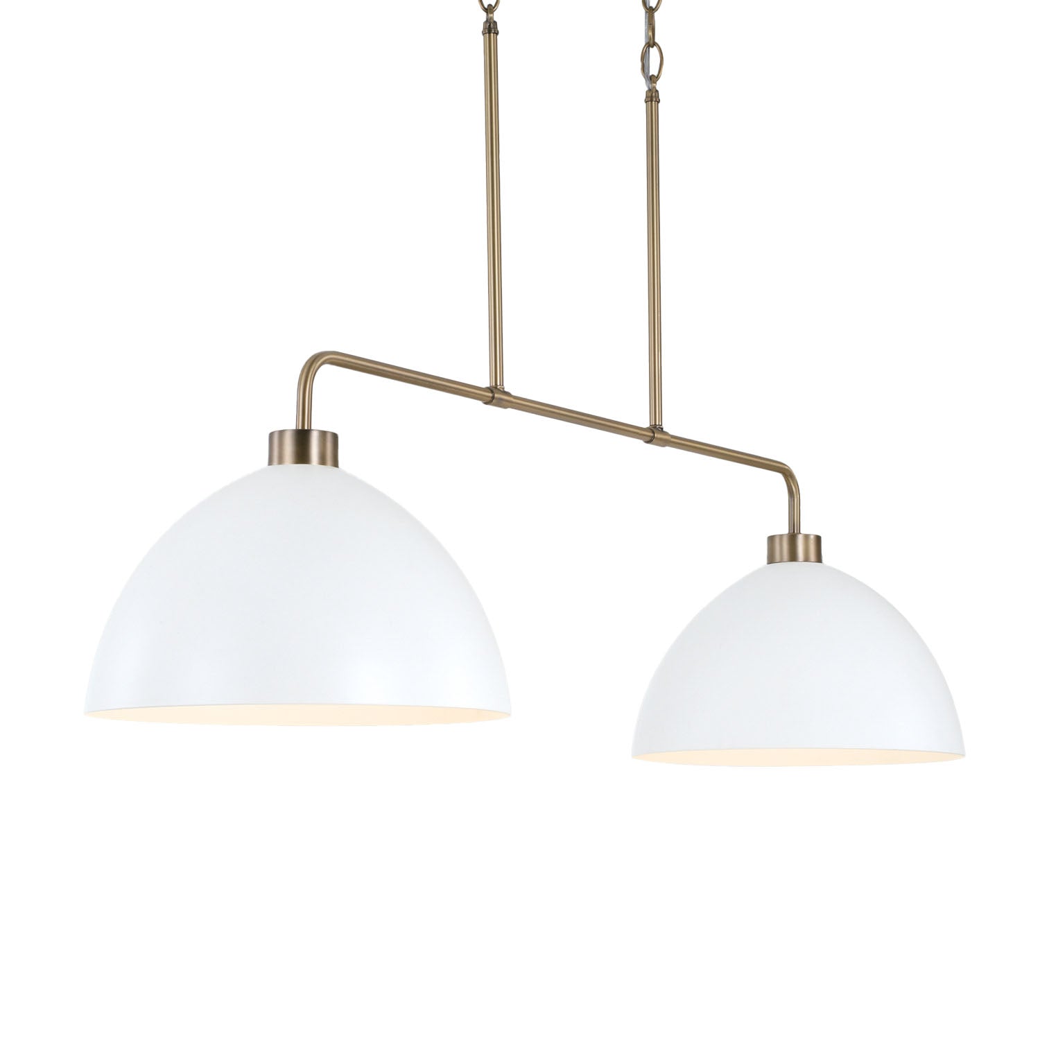 Cleo 2 Light Linear Pendant 44", White and Aged Brass