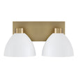 The Cleo 2 Light Vanity brings modern mid-century style to your bathroom with its fresh design and distinctive white and aged brass finish. Featuring two crisp white shades with warm aged brass accents, this fixture delivers bright, even illumination perfect for daily grooming and self-care routines. The striking two-tone finish combines contemporary sophistication with mid-century warmth, creating a perfect balance of modern and vintage appeal for any vanity space. The Cleo vanity light combines iconic mid-century lines with a sophisticated color combination to create a distinctive lighting solution that transforms your bathroom with modern sophistication.